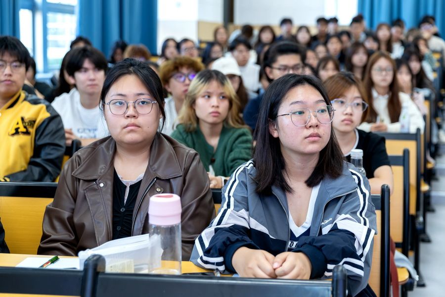 郑清春校长的“开学第一课”内容丰富、观点深刻,课堂上不时响起阵阵掌声。马克思主义学院青年教师曹雪梅表示,聆听了郑清春校长讲授的“开学第一课”,深受触动。作为思政课教师,要把历史细节转化为鲜活教材,用先烈故事点燃学生爱国情,引导他们把“珍爱和平”的认知,熔铸为“强国建设”的青春行动,让红色基因在课堂上真正“活”起来。经济与管理学院物流2402班学生蒋琳表示,通过聆听郑清春校长讲授的“开学第一课”,深刻认识到新时代青年在强国建设、民族复兴中的责任与使命,未来将努力学习专业知识,提升综合素质,做新时代挺膺担当的奋斗者。
