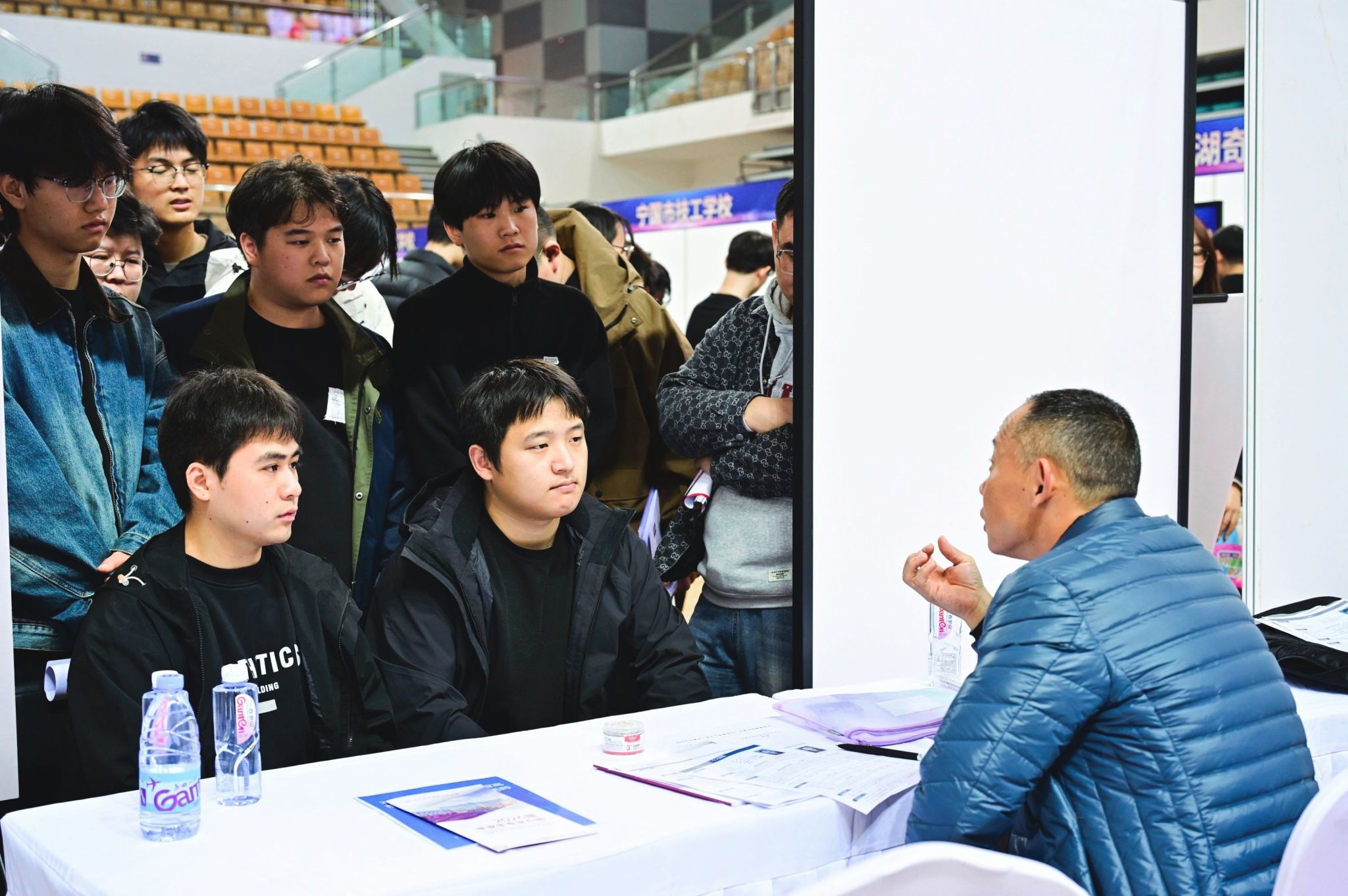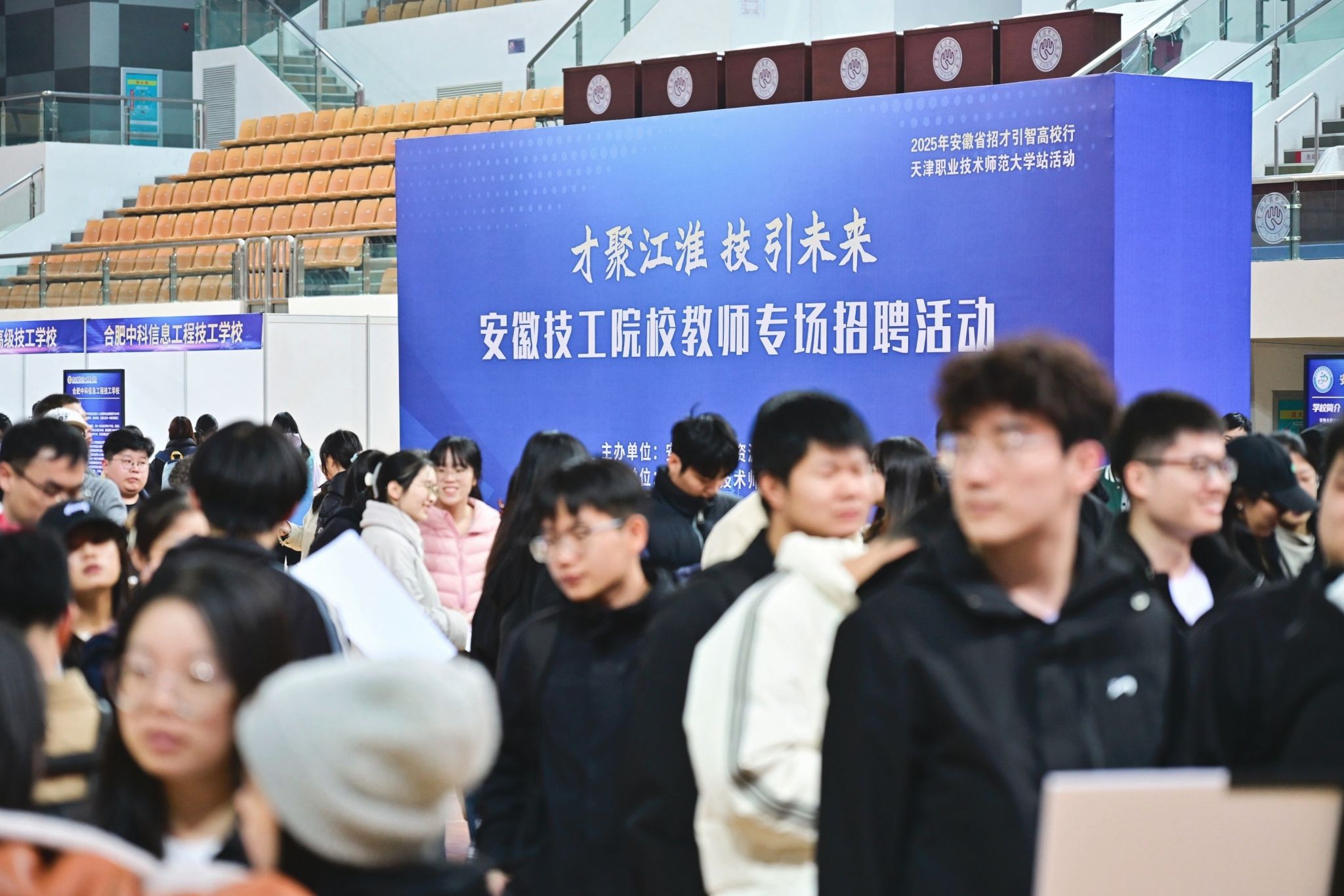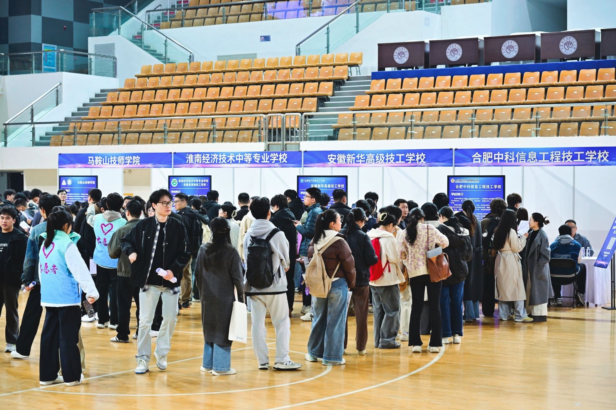 本网讯【通讯员 王洪闰】为深入学习贯彻党的二十届四中全会精神,落实国家新时代高技能人才队伍建设部署,进一步加强安徽省人力资源和社会保障厅与我校的合作,11月11日,由安徽省人力资源和社会保障厅组织的“安徽省招才引智高校行——‘才聚江淮 技引未来’安徽技工院校教师专场招聘活动”在我校体育馆成功举办。校党委常委、副校长李富森莅临现场指导工作。