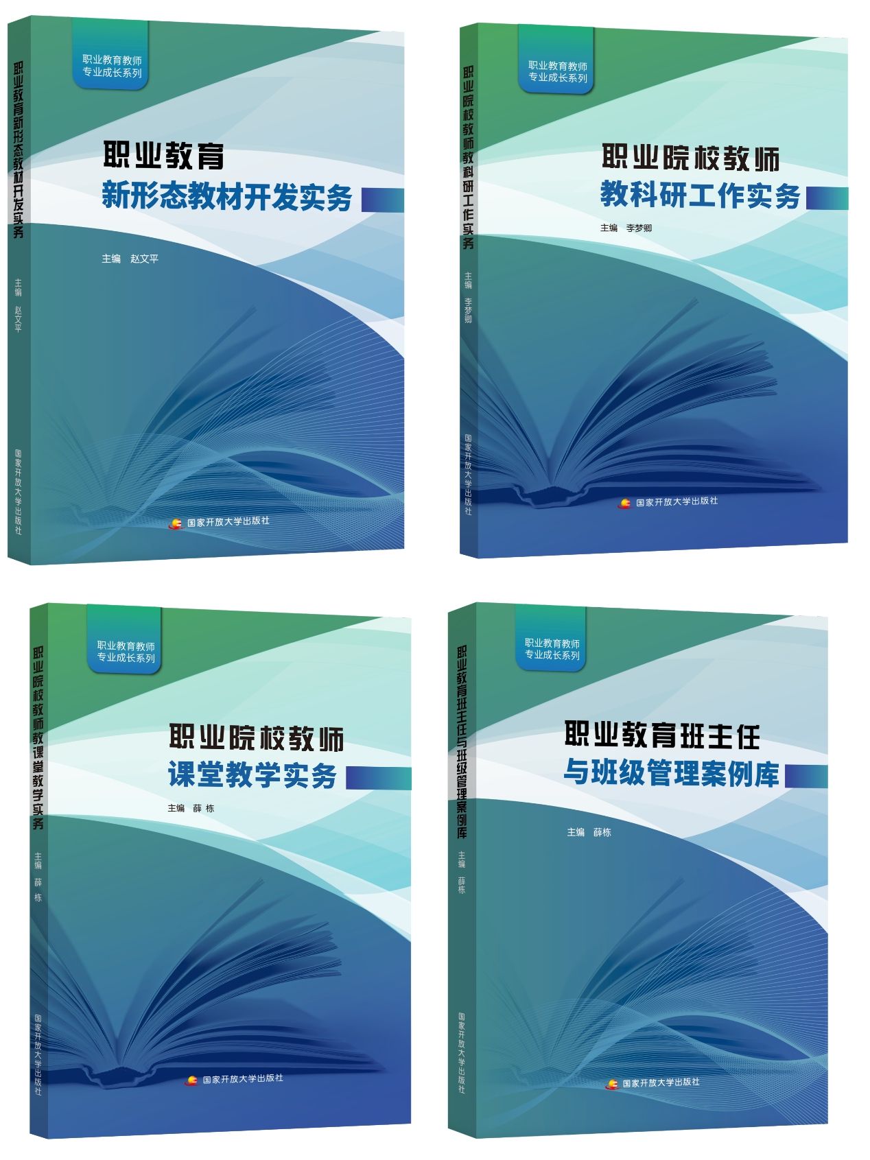 本网讯【通讯员 杨燕楠】近日,由我校教育学科组织编撰的职业教育教师专业成长系列教材,由国家开放大学出版社出版发行。该套职业教育教师专业成长系列教材共计7册,目前已出版发行《职业教育新形态教材开发实务》《职业院校教师教科研工作实务》《职业教育班主任与班级管理案例库》《职业院校教师课堂教学实务》4册,后期将陆续推出《职业教育教师综合育人实务》《职业教育教师数字化能力发展实务》《职业教育教师心理健康实务》3册,持续为职业教育教师专业发展赋能助力。该系列教材的出版为职业院校教师队伍专业化建设提供了优质的教学资源支撑,对推动职业教育高质量发展具有重要意义,可作为职教师资职前培养与职后培训用书。