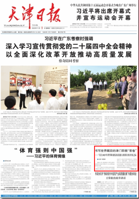 本网讯【通讯员 余瑛】11月9日, 天津日报以“书写世界瞩目的津门职教‘答卷’——写在2025年世界职业院校技能大赛排位赛开赛之际”为题,报道落户在我校的中国—上合组织职业技术教育合作中心相关情况。