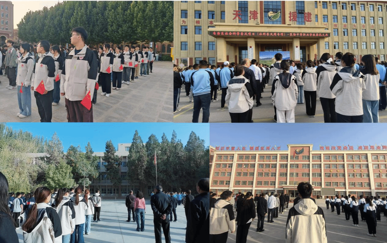 10月1日,支教团全体成员分别在和田、策勒、于田、民丰四地的支教校共同举行了“同升一面旗,共筑中国梦”主题升旗仪式,庆祝中华人民共和国成立76周年。