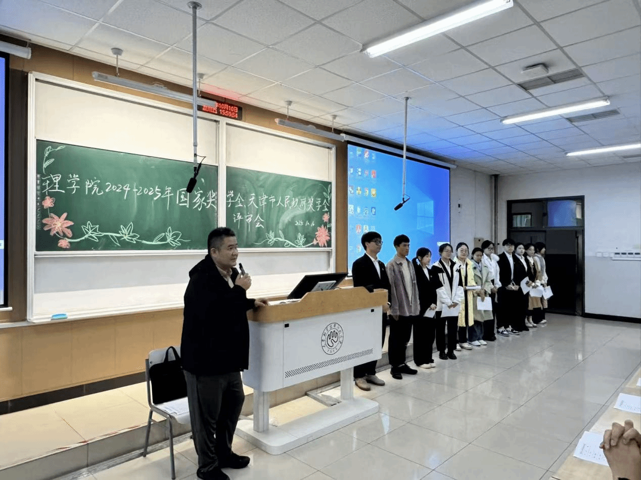本网讯【通讯员 李家鹏】为充分发挥奖学金的激励与导向作用,深入开展新生入学教育,树立先进典型,营造积极奋发的育人氛围,10月10日,理学院组织召开2024-2025学年国家奖学金、天津市人民政府奖学金评审会。学院党委副书记戚霄、副院长盛朝霞,各系部主任、教学秘书、教师代表、辅导员代表及学生代表共同组成评审小组,参与了本次评审工作。2025级本科生200余人现场观摩。