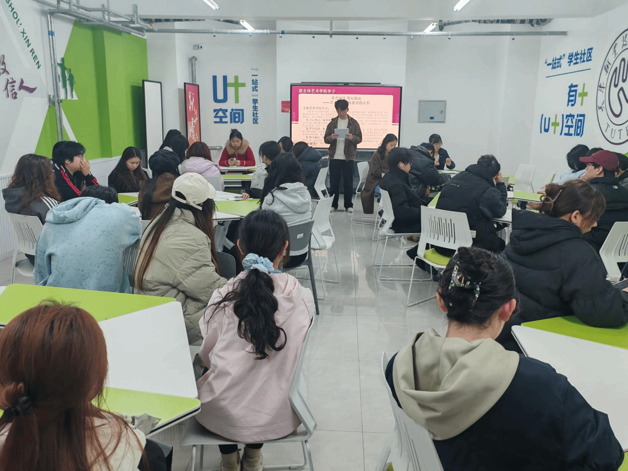 随后,学生代表宣读《艺术学院学风建设倡议书》,从立心明志、严守纪律、恪守诚信、文明宿舍、结伴共进、崇德尚艺、严于律己等七个方面,向全院学子发出倡议,号召大家从细微处做起,以实际行动营造优良学风。学生会代表还向各班介绍了本学期学院重点工作与活动安排,旨在搭建多元化实践育人平台,拓宽综合素质培养路径,引导同学们做好个人学期规划,实现德智体美劳全面发展。