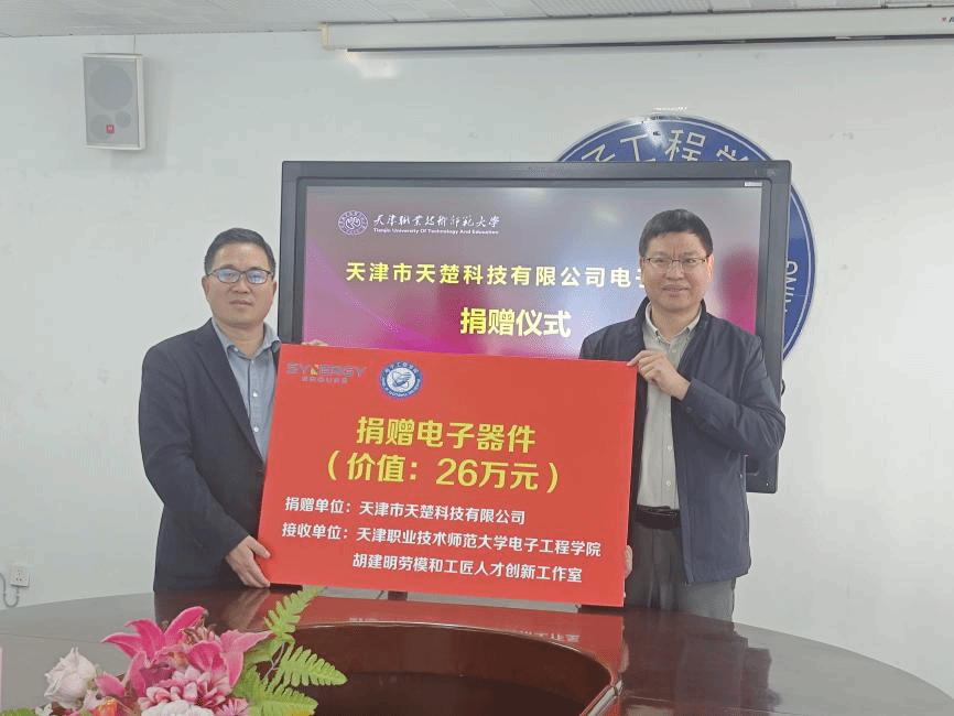 本网讯【通讯员 李开昕 薛丽】为深化校企协同育人,助力实践教学提质增效,4月7日下午,我校电子工程学院与天津市天楚科技有限公司在机电楼326会议室举行电子器件捐赠仪式。天津市天楚科技有限公司副总经理王子田、项目主管魏雨亭、市场主管阮亮亮,以及电子工程学院领导班子、实验中心教师代表参加仪式。