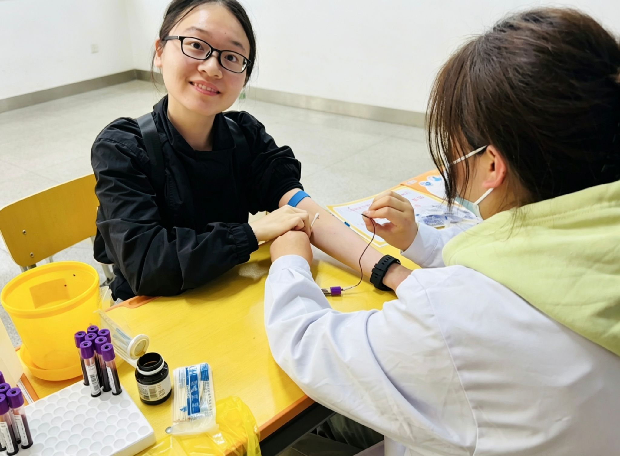 本次入库登记采用数字化管理模式,通过微信小程序即可完成阅知入库同意书、健康征询、信息登记、电子签名等报名流程。天津市红十字会工作人员与校红十字会志愿者团队全程提供指导服务,确保流程规范有序。截至下午3时,共有17名学生志愿者成功完成血样采集,他们的造血干细胞信息将正式录入中华骨髓库。