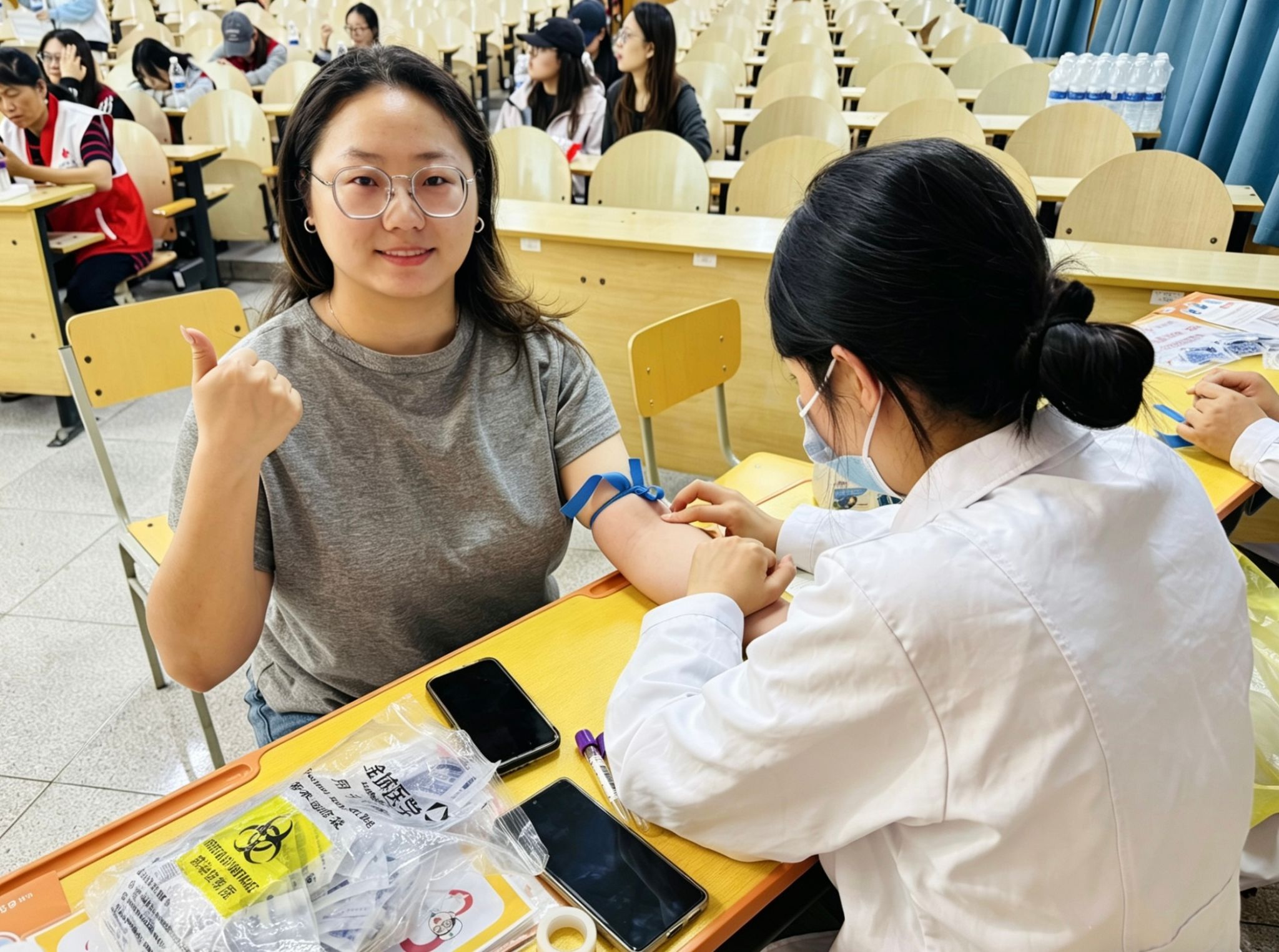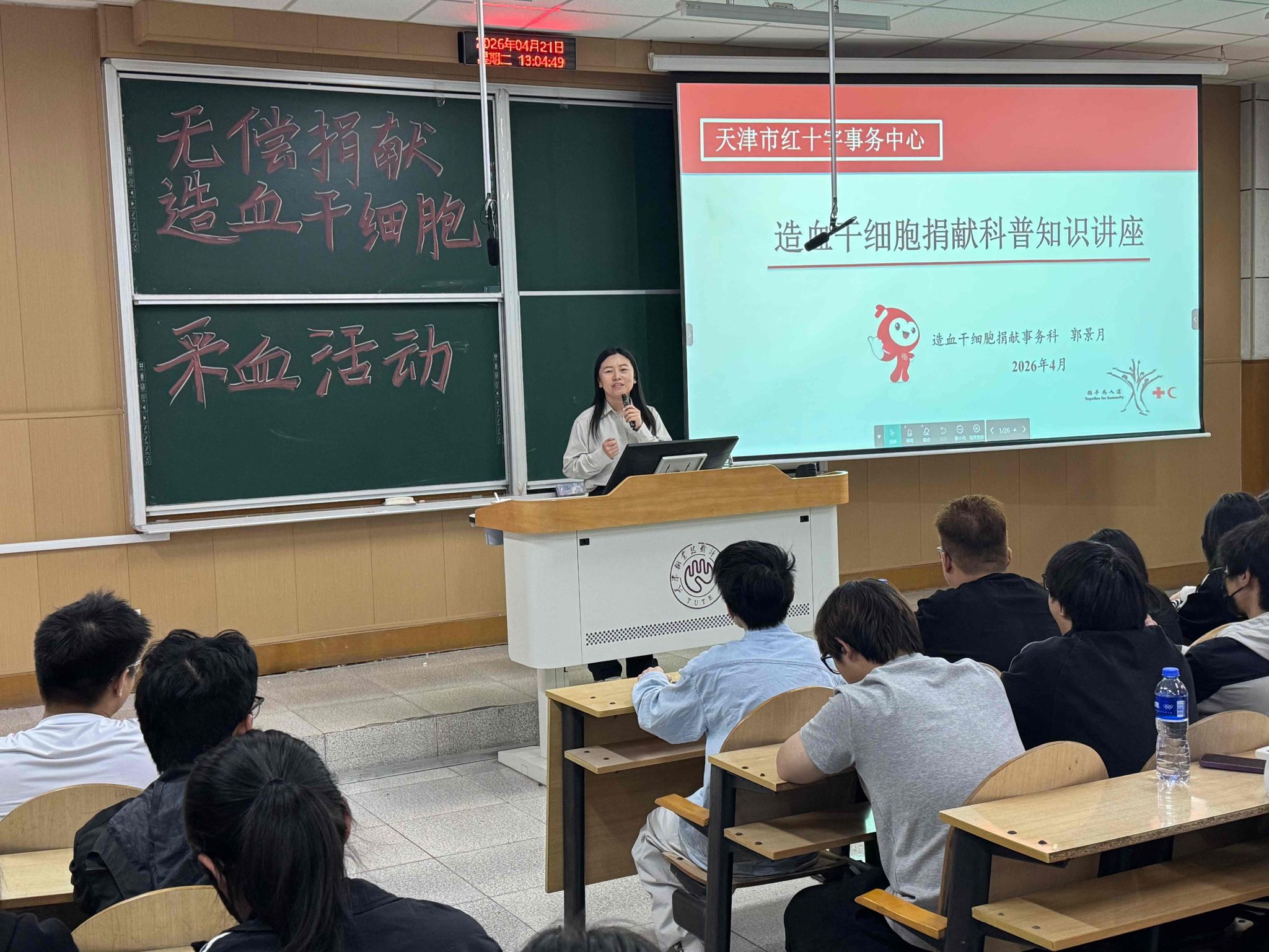 本网讯【通讯员 邢骏杰】4月21日,由校团委、校红十字会联合天津市红十字会举办的“造血干细胞采血入库”活动在我校阶梯教室顺利举行。本次活动旨在普及造血干细胞捐献知识,号召青年学子以实际行动践行社会责任,为血液病患者传递生命希望。
