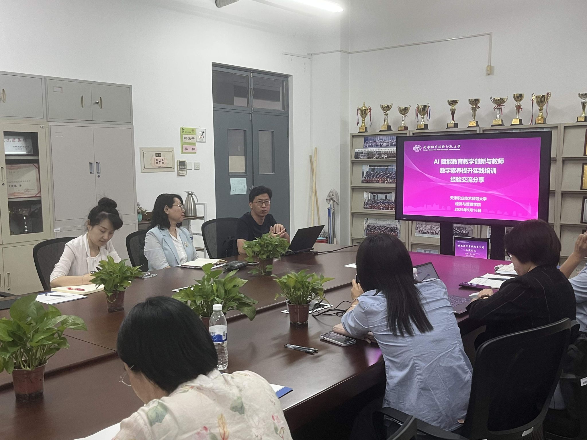 本网讯【通讯员 李静】为深化人工智能与教育教学的深度融合,全面提升教师数字素养与人工智能应用能力,9月16日,经济与管理学院在第一教学楼710会议室开展“AI赋能教育教学创新与教师数字素养提升实践培训经验交流分享”活动,由物流管理系主任付强主讲,围绕主....