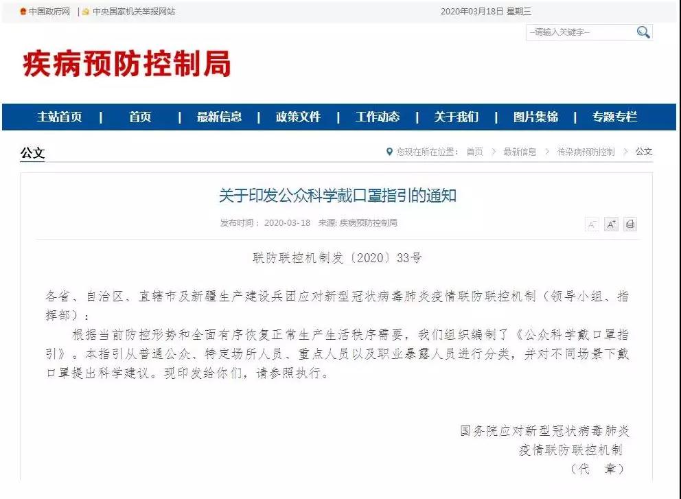 3月18日,国家卫健委网站发布《关于印发公众科学戴口罩指引的通知》,对不同场景下戴口罩提出科学建议,全文如下。