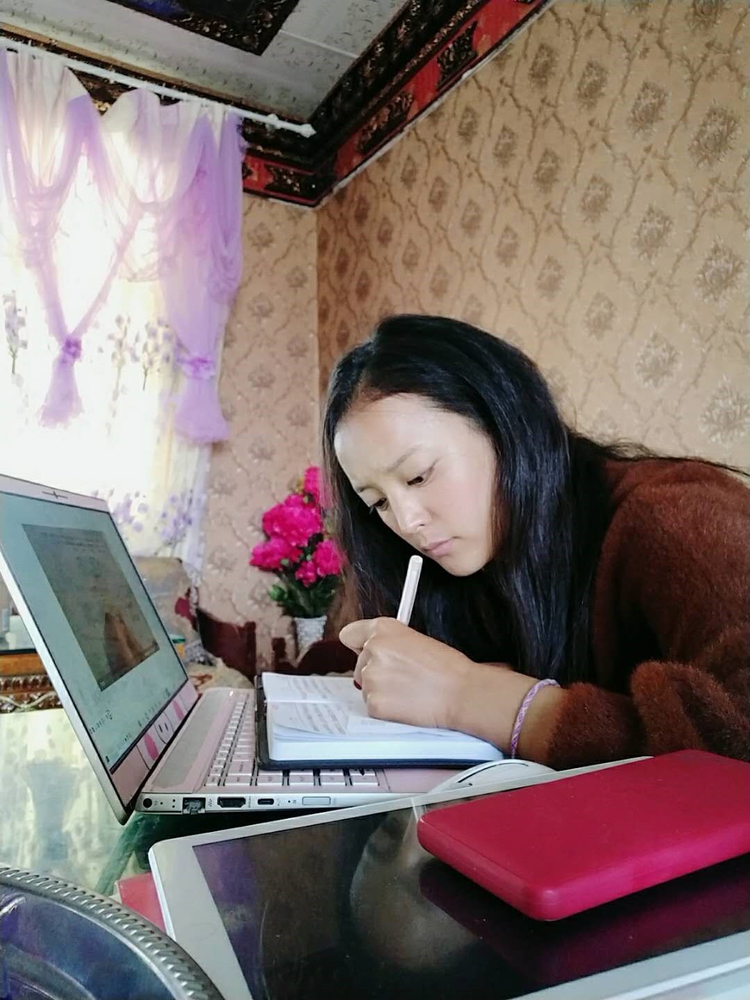 信息学院教技专业1702班巴桑措姆是一名大三的藏族学生,2月24日开始,早上六点她会起床做个早饭,吃完后再开始等待老师直播。每位老师采用的方式有所不同,有些是qq直播,有些是按照上课时间在雨课堂签到、看视频、看材料、做习题。有些专业课程会涉及到一些代码和计算题,因为网络不流畅,导致她跟不上老师节奏,与老师间的互动也不及时。虽然有一些实际困难和问题,但是她说:“解决问题的方法总比困难本身多很多,只要想学,总是可以想到解决这些问题的办法。希望疫情早一点结束,早一点回归课堂和大家一起学习”。