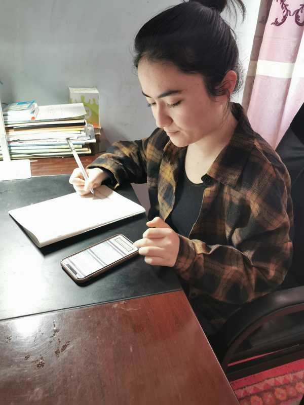 热萨莱提·阿卜杜凯尤木,经济与管理学院财会1901班学生,新疆喀什疏勒县人。疫情期间,各学校广泛开展网络教学,热萨莱提和妹妹都需要上网课,但是家里没有网络,父母的手机也是非智能手机,姐妹俩只能用热萨莱提的手机流量来听课。手机网络差,时常掉线、卡顿,她和妹妹有些上课时间段有冲突,妹妹就在其他时间通过回放视频补课学习。由于新疆喀什与北京时间存在两个半小时的时差,为跟紧同学们学习的步伐,热萨来提常常需要清晨5点多起床。面对硬件条件不足以及时差带来的不便,热萨来提依旧充满信心,她说:“在这众志成城抗击疫情的关键时刻,再艰苦的学习条件也不会影响我和妹妹好好学习的决心”。
