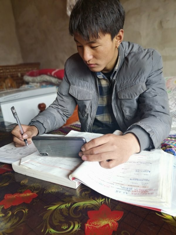 电信1701班贡扎同学,居住于西藏那曲市嘉黎县荣多乡江多村。由于地处偏远地区,村里一直无手机信号,镇上手机信号也时常不稳定,为了顺利进行网络课的学习,贡扎同学自己主动办理了流量套餐,用手机流量进行网络课学习。2月24家里人开始在村里过藏历新年,又恰逢学校第一天上网络课,为保证学习,贡扎同学只能暂时与家人分离,自己一人居住在镇上上网络课。他说:“西藏这边偶尔会有断电的情况,一旦断电就没法上网,而且网络也不太稳定,经过前期不断调整适用,开学几天来还比较顺利,网络还算流畅。虽然教学资源有限,网络学习并没有课堂教学那样直观生动且互动性强,但我相信这些困难都是暂时的,我会利用一切身边能利用的资源好好学习。”