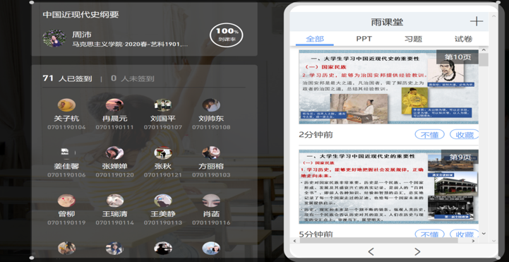 马克思主义学院教师周沛使用雨课堂授课,学生到课率百分之百