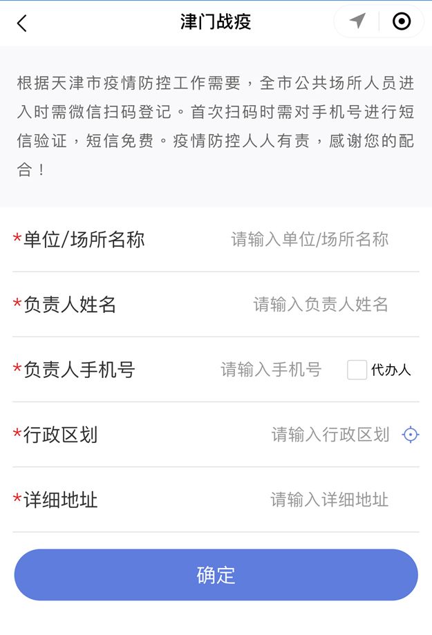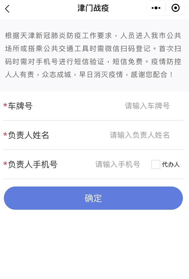 二、所有机关企事业单位、各类公共场所以及公共交通工具管理者或营业者,须通过微信搜索打开“津门战疫”小程序,按照提示要求,输入必要信息后,系统生成独有小程序码,在场所进出口、上下车明显部位进行张贴,并安排专门人员引导、辅助无操作条件人员进行登记。所有进入本通告第一条范围的人员须配合扫码,首次扫码需短信验证。系统采集的数据仅用于疫情防控工作。
