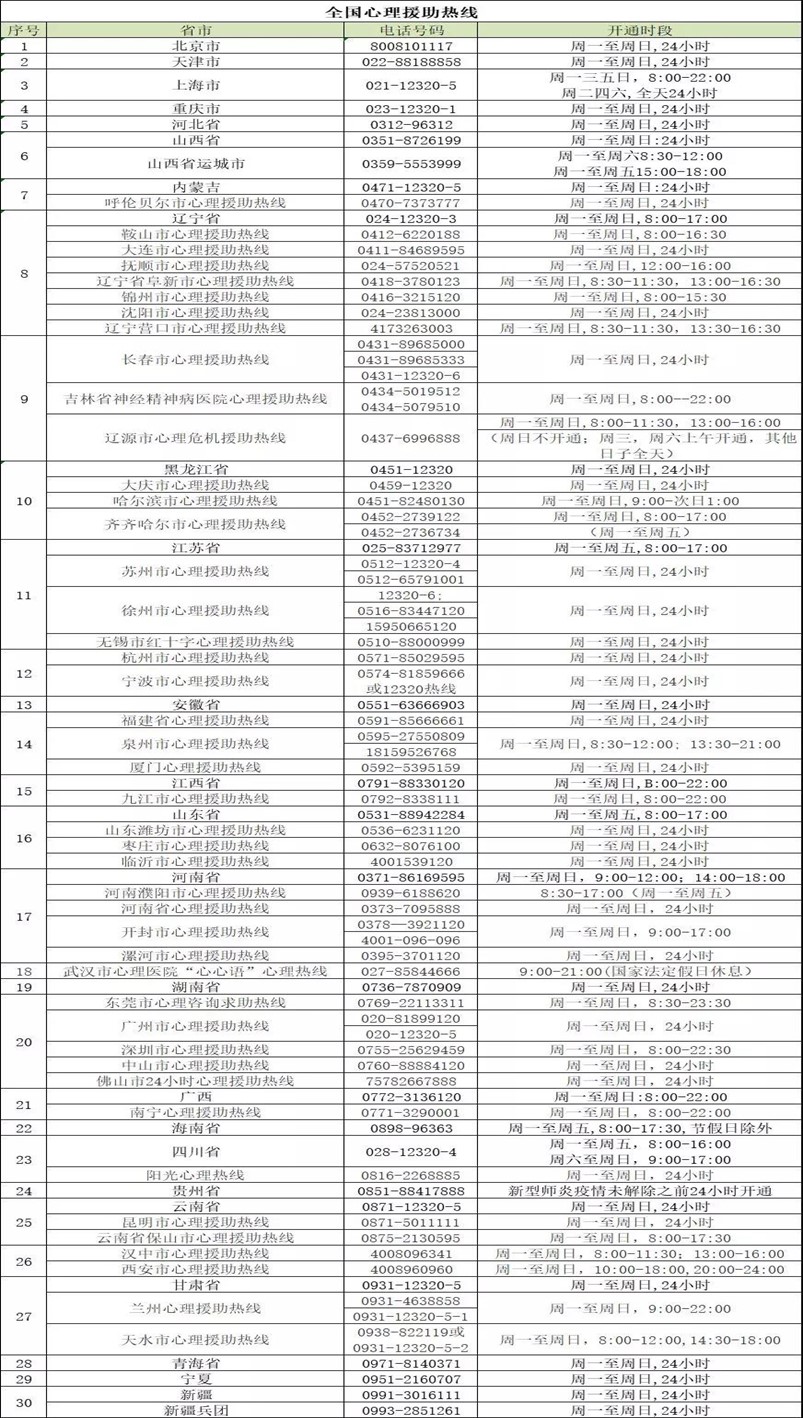 3.为了同学们更及时地得到帮助,我们搜集了天津市及全国心理援助相关热线,如有需要,可以拨打。