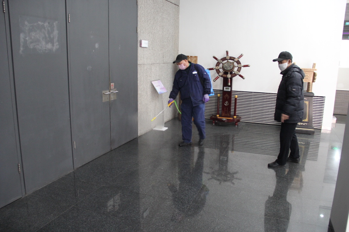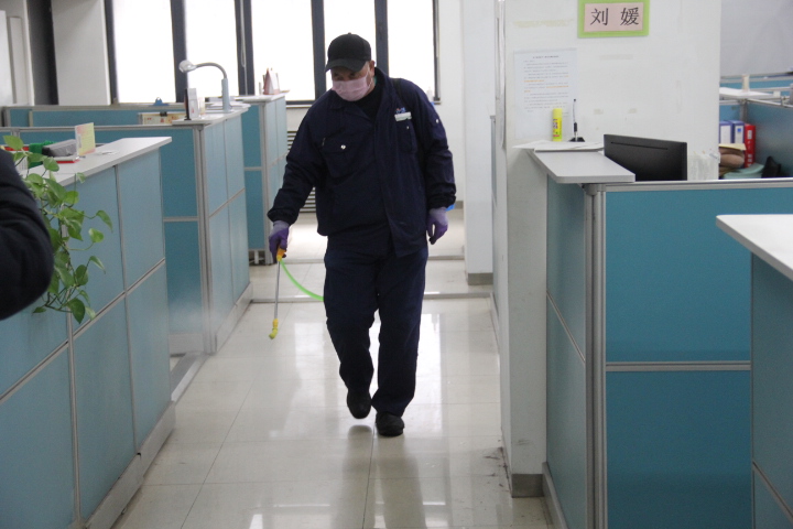 后勤管理处作为防控工作指挥部办公室的牵头单位,第一时间接津南区防疫部门指令开展防疫检查和排查工作并向校领导汇报开展情况,同时起草防控预案,着手防疫物资准备,并第一时间开展消杀工作。后勤管理处主要负责联系市教育两委和津南区有关部门,联合办公室其他成员制定和组织实施疫情防控工作方案等相关安排及专项预案,组织协调学校新型冠状病毒感染的肺炎疫情防控具体工作,汇总上报疫情防控情况及数据,落实“日报告,零报告”制度。作为物资保障组和防控组成员积极做好防疫指导、防控所需要消毒物品、口罩、体温计、红外体温测量仪、医用防护服装等物资贮备工作。负责日常使用消毒剂对校公共区域进行定时、定点消毒,对垃圾箱、垃圾站等卫生死角进行重点清洁和消杀,确保校园供水、供电、饮食和用车等后勤保障工作。