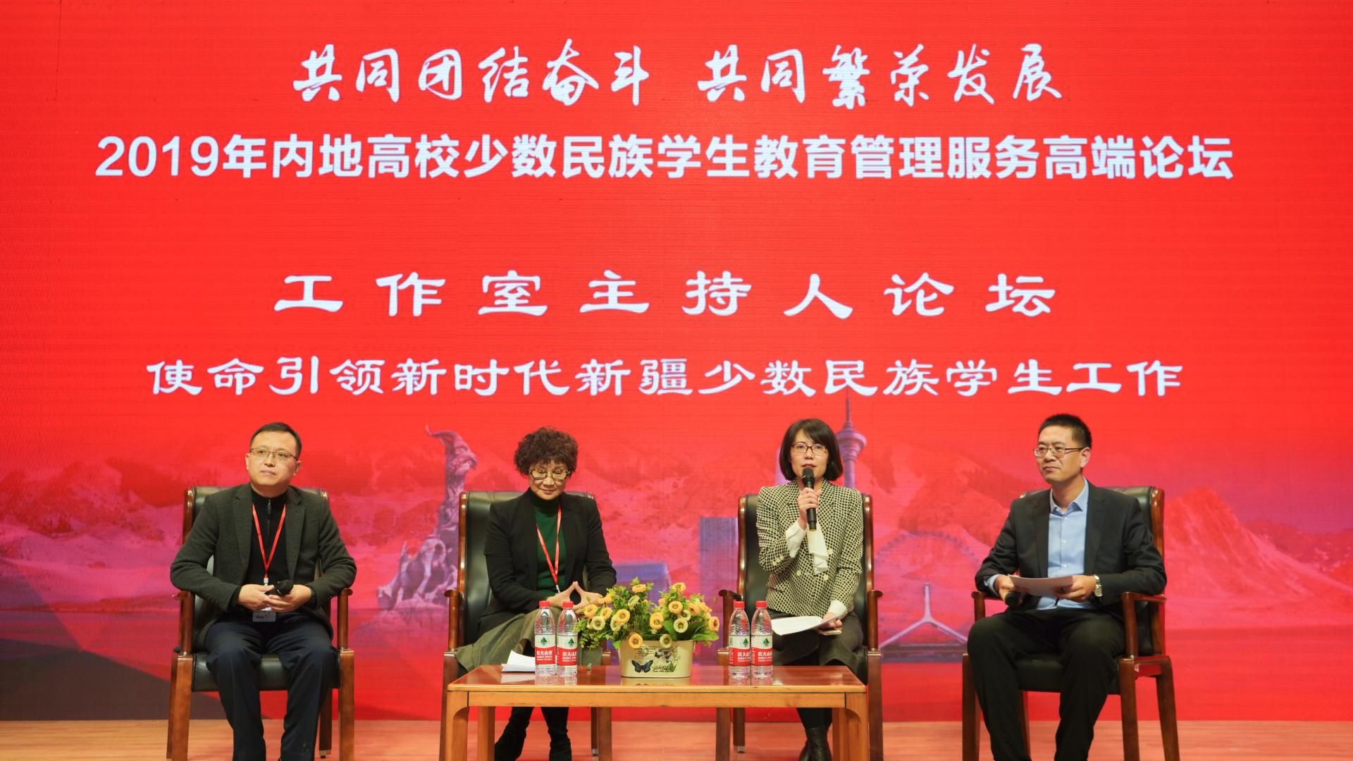 广东省高校名辅导员李敏工作室主持人李敏,天津市少数民族学生管理服务工作室主持人佟艳、天津财经大学“石榴籽”工作室主持人孙高昂,中国矿业大学“矿且有你”工作室主持人畅军亮,就“少数民族学生学生管理服务工作室应如何更好发挥自身优势,开展教育实践”主题开展交流。
