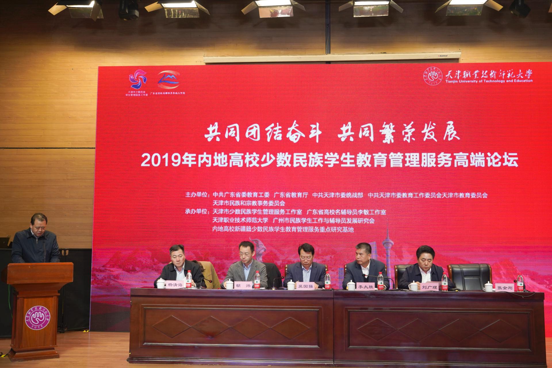 本网讯【通讯员 赵波】12月8日至9日,“共同团结奋斗 共同繁荣发展——2019年内地高校少数民族学生教育管理服务高端论坛”在天津职业技术师范大学举办,深入学习贯彻习近平新时代中国特色社会主义思想,凝聚共识,探索规律、分享经验、交流信息,全面加强和改进内地高校少数民族学生教育管理服务工作,促进各民族共同团结奋斗、共同繁荣发展。论坛由中共广东省委教育工委、广东省教育厅、天津市委统战部、天津市委教育工委、天津市教委、天津市民宗委联合主办,广东省高校名辅导员李敏工作室、天津市少数民族学生管理服务工作室等单位承办。