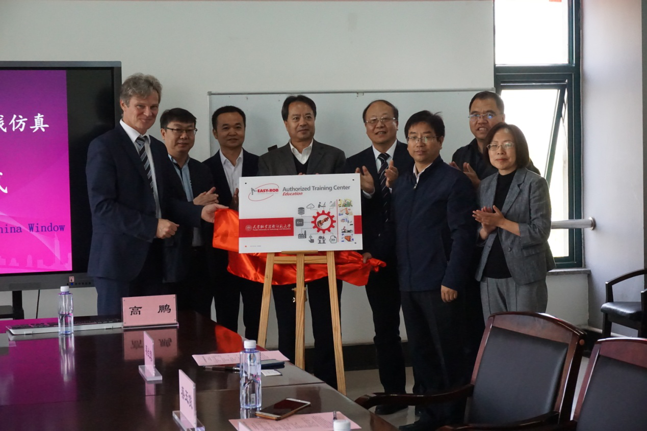 交流会后,德国工业机器人离线仿真软件EASY ROB 公司、德国China Window 国际智库和机械工程学院联合签署“中德工业机器人离线仿真软件教学培训技术服务合作协议”, 进一步加强学校工业机器人专业人才培养和教学体系完善,引进德国工业机器人专业领域优质资源,探索开发和制定中国工业机器人教育和培训标准以及软件编程证书体系在中国推广应用和技术服务支持。三方共同为“中德工业机器人离线仿真编程软件实验室”揭牌,德方向机械工程学院赠送机器人专业相关教学资源的资料。