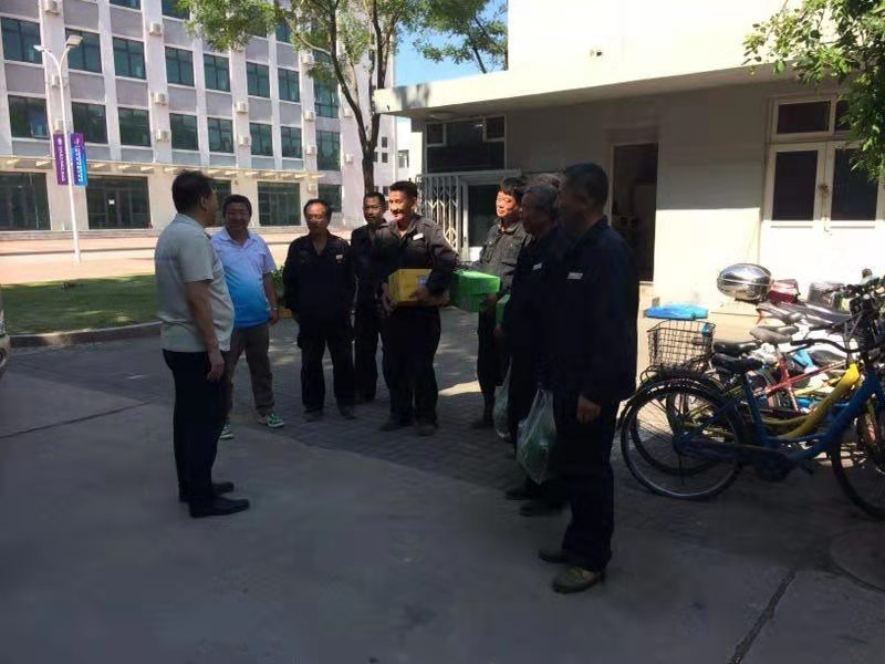 8月16日上午,校党委书记张金刚在党委办公室、校长办公室、后勤管理处、保卫处主要负责同志的陪同下看望慰问暑期坚守在工作一线的教职员工。