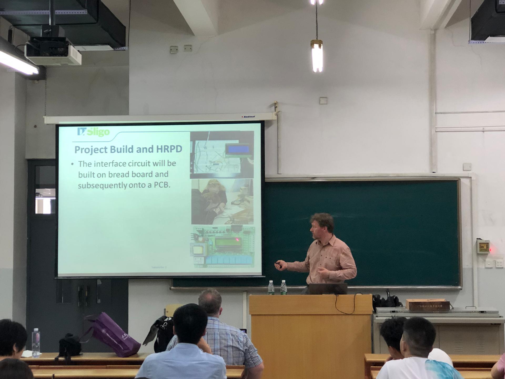 访问期间,同行的John Joe Callaghan为电子信息工程合作办学专业的学生们讲授了为期五天的学术英语课程并对学生们的英语水平进行了测试。在28日召开的教学研讨会上,John Joe Callaghan表达了对我校大学英语课教学模式的赞同以及学生英语水平的肯定,并就合作办学班级学生的英语学习状况与参会的任课教师交换了意见。
