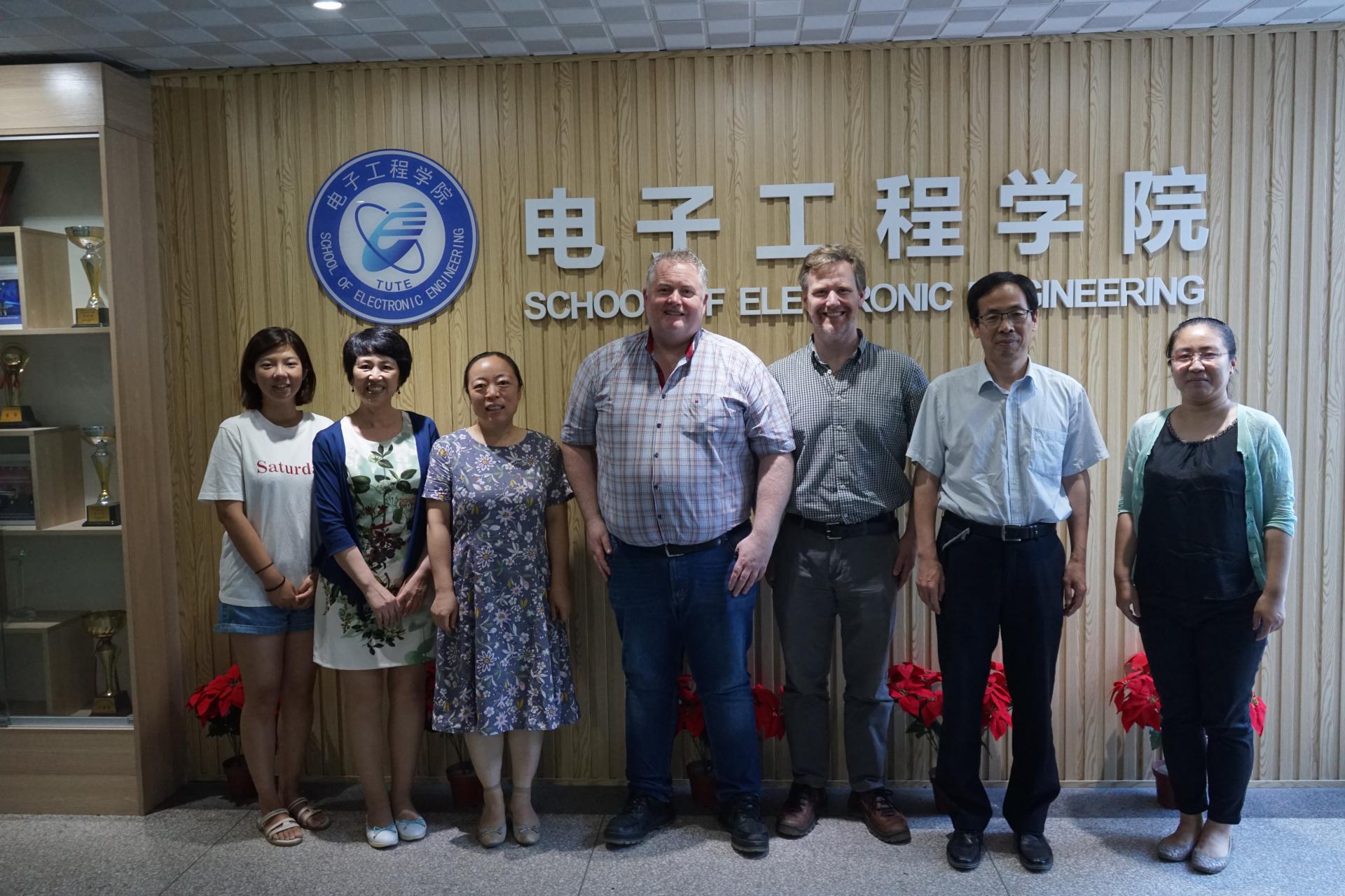 本网讯(通讯员 沈磊)6月23-29日,爱尔兰斯莱戈理工学院国际交流处处长Patrick Lynch一行三人到电子工程学院交流访问,并参加2019年校园开放日活动,推动合作办学专业的招生工作。副校长阎兵、国际交流处处长翟风杰、电子工程学院院长张军等会见来宾。