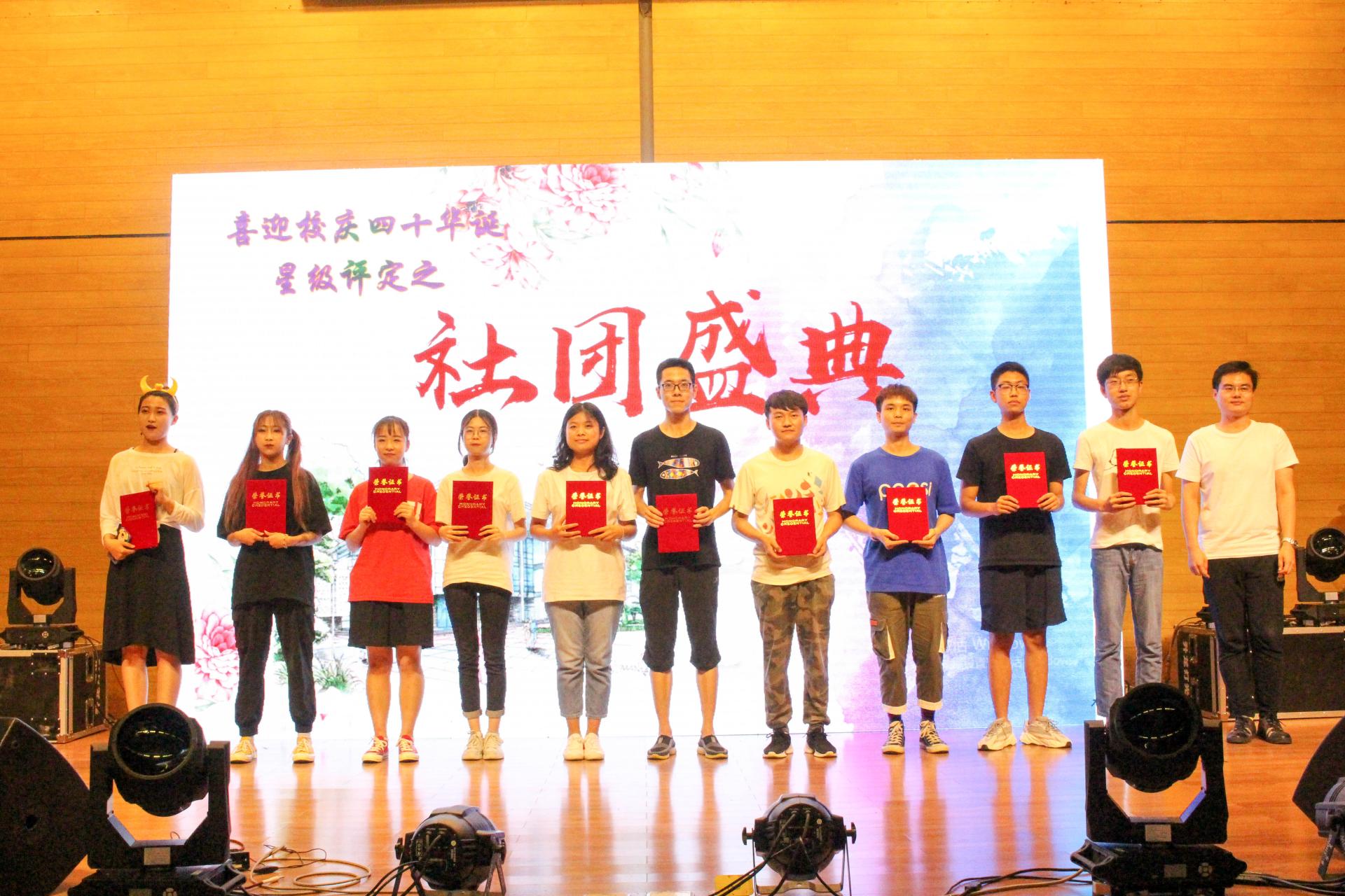 本网讯(通讯员 饶娟)6月21日晚,我校2019年度“喜迎校庆四十华诞——十佳社团颁奖典礼”在小礼堂举行。此次活动由校团委主办,校社团联合会承办。