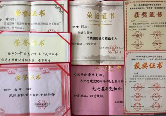 孙峰,2004年加入中国共产党,2005年7月入职天津职业技术师范大学艺术学院从事学生思想政治辅导员工作,担任学工办主任、团委书记、学生党支部书记至今。2009年获“天津市普通高校优秀辅导员”荣誉称号;2011年获天津市“三下乡社会实践先进个人”荣誉称号;2012年获天津市“三下乡社会实践先进个人”荣誉称号;2014年 获“天津市优秀团干部”荣誉称号;2015年获“天津市教育系统优秀思想政治工作者”荣誉称号;2018年获天津市“新时代·一带一路实践行”优秀指导教师。