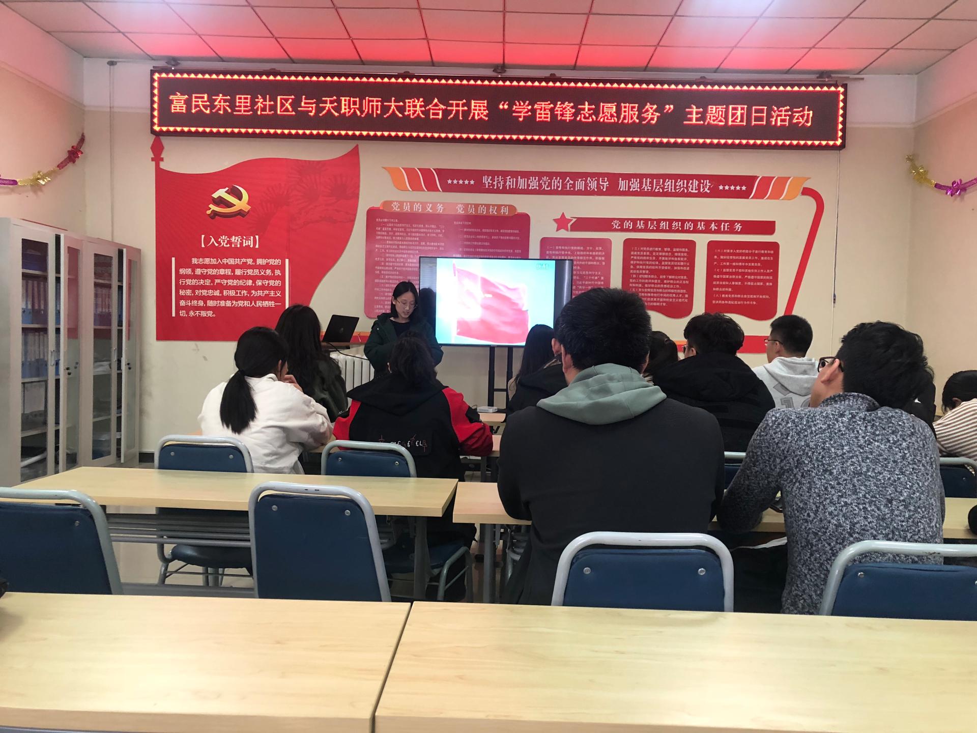 学校各级团组织、各院(部)青年志愿者协会也积极发挥志愿服务基地优势,在学校、社区广泛开展志愿服务活动,志愿者们在小学教大家合唱《学习雷锋好榜样》歌曲,向小朋友们讲述雷锋事迹、语录以及雷锋精神的内涵,引导他们分享自己对雷锋精神的理解、探讨如何在生活中践行雷锋精神;走进社区开办科技讲堂,普及科学文化知识;走进养老院开展爱老助老活动;走进农民工家庭开展义务家教奉献爱心。