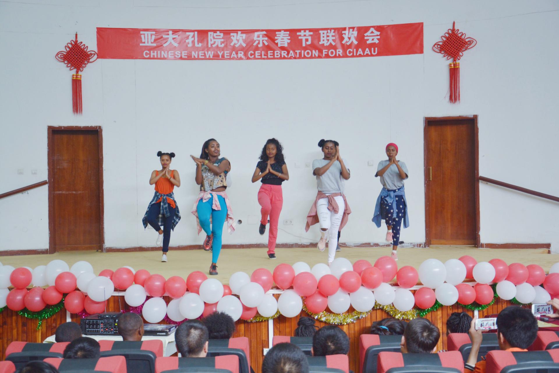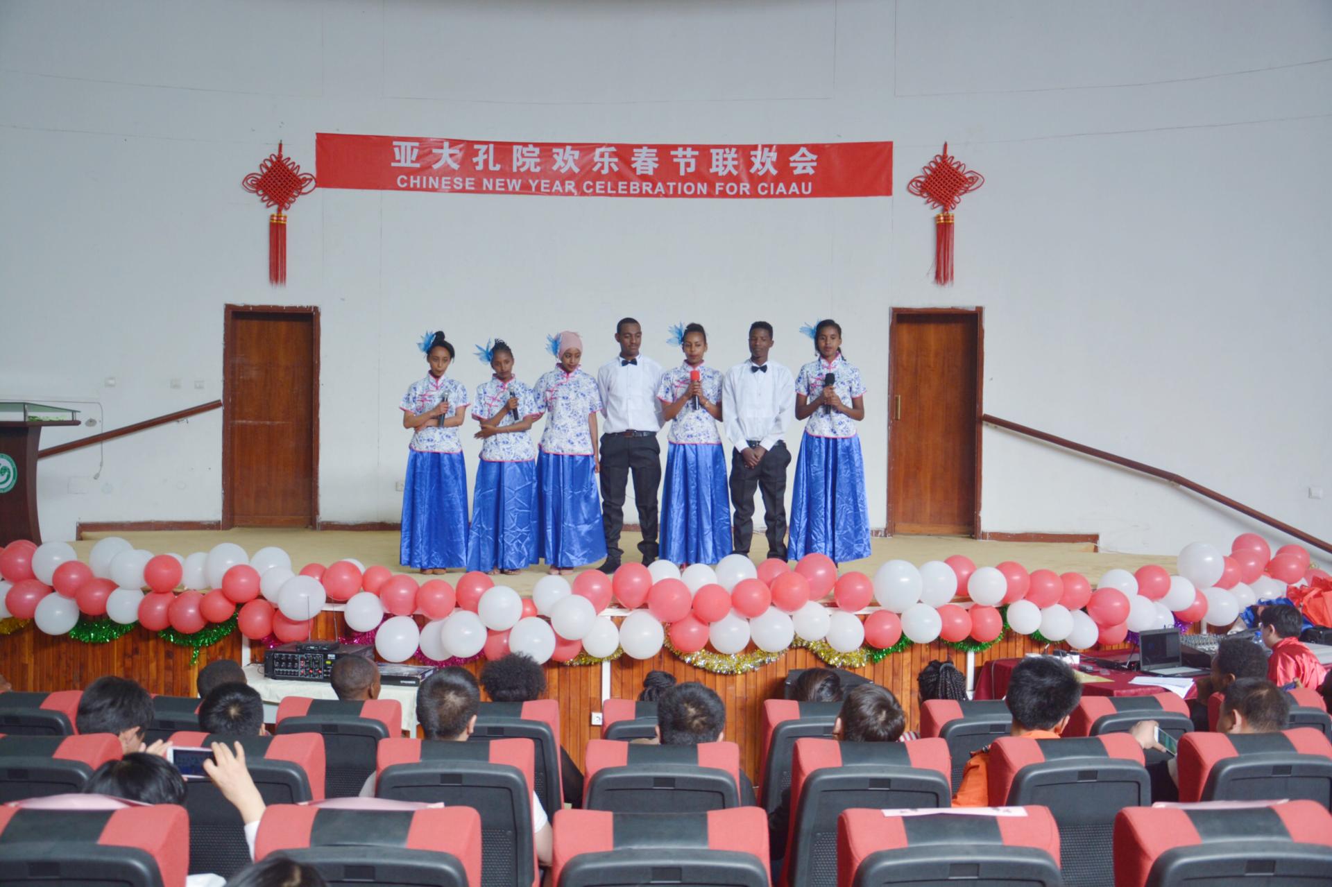本网讯(国际交流处) 1月29日,我校在埃塞俄比亚建设的亚的斯亚贝巴大学孔子学院在亚大Mandela Hall成功举办2019年春节联欢会。中国驻埃塞俄比亚使馆参赞严向东、中国驻埃塞俄比亚非盟使团参赞杨晓兰、亚的斯亚贝巴大学外事处长Demeke, 埃塞俄比亚农业部公共关系局局长Alamau、亚的斯亚贝巴大学语言学院院长Zelealam, 外事处长Demeke,埃塞俄比亚职业教育孔子学院、中国援埃塞俄比亚军医疗队、中资企业代表及亚大师生共150余人参加了本次活动。