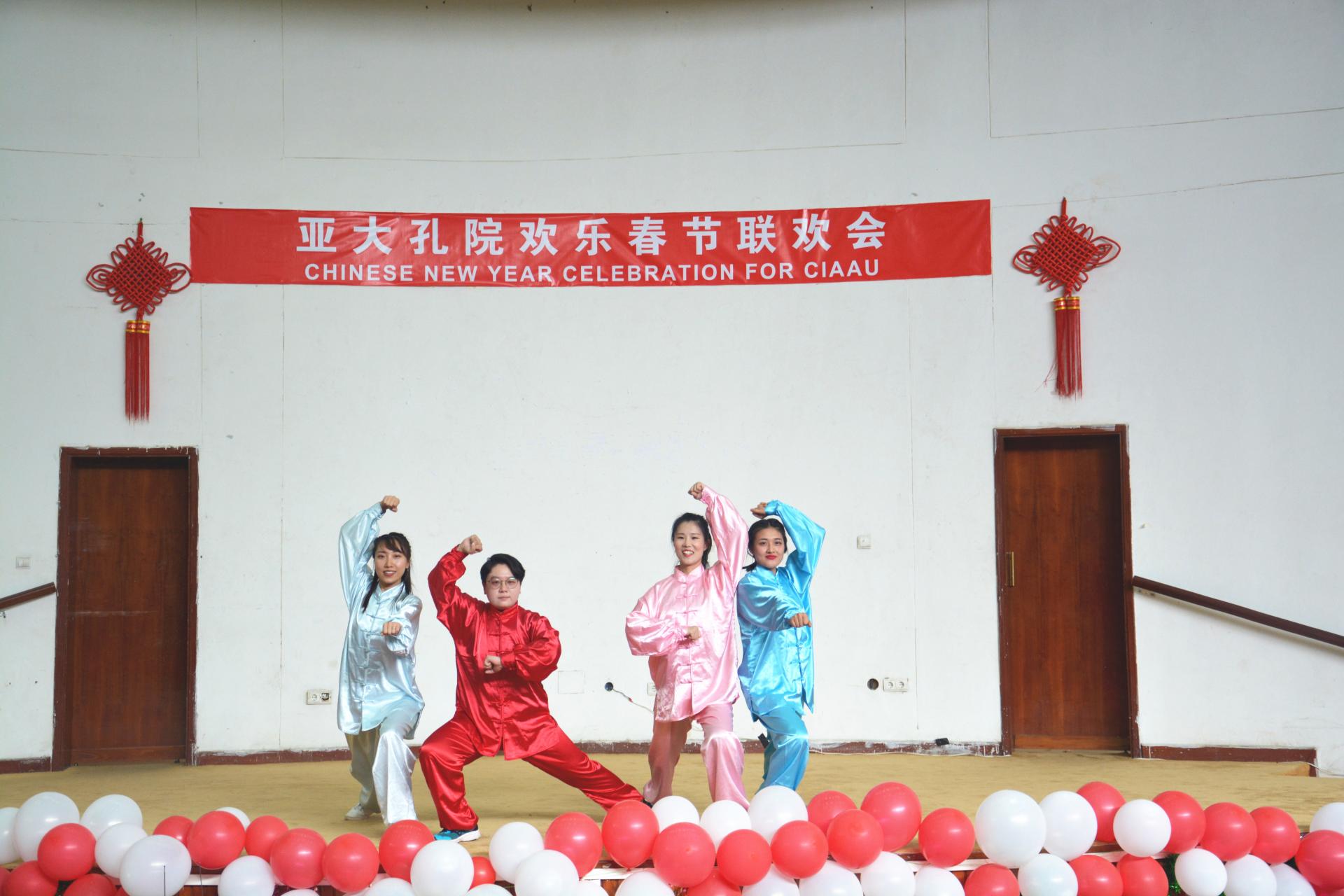 随后, 孔院师生和兄弟单位的员工为大家带来了精彩的文艺表演。表演形式多种多样, 节目精彩纷呈。既有中文歌曲、太极拳表演及传统乐器口琴演奏, 又有来自清华大学研究生的舞蹈表演,还有埃塞俄比亚当地学生的歌舞表演和中国经典歌曲联唱,赢得了现场观众的热烈鼓掌。整场联欢会在欢快、热闹的气氛中落下帷幕。