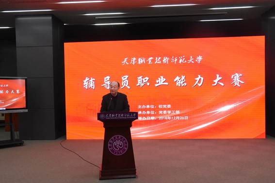 本网讯(通讯员 刘彩)12月26日,我校第二届辅导员职业能力大赛决赛成功举办。校党委副书记马雷出席并讲话。部分兄弟院校学工部长受邀出席,并与我校党委组织部、党委宣传部、党委学工部、校团委、人事处、社科部等部门负责同志共同担任评委。全体辅导员到场观摩比赛。