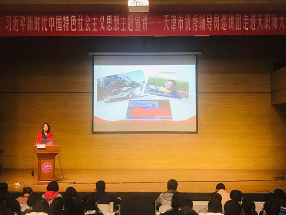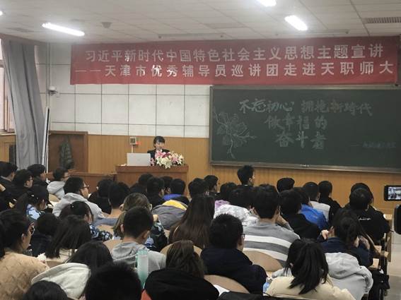 天津市优秀辅导员巡讲团成员、天津财经大学李慧老师,天津职业技术师范大学刘晶、赵然老师,围绕“学习新思想励志新时代”主题,结合自身工作经历对习近平新时代中国特色社会主义思想进行解读。他们分别从“四个正确认识”、“新时代、新思想、新作为”、“做幸福的奋斗者”等角度,运用鲜活案例,结合辅导员工作实际及学生成长成才需求,引导在场师生进一步加深对习近平新时代中国特色社会主义思想的全面认识和准确理解。