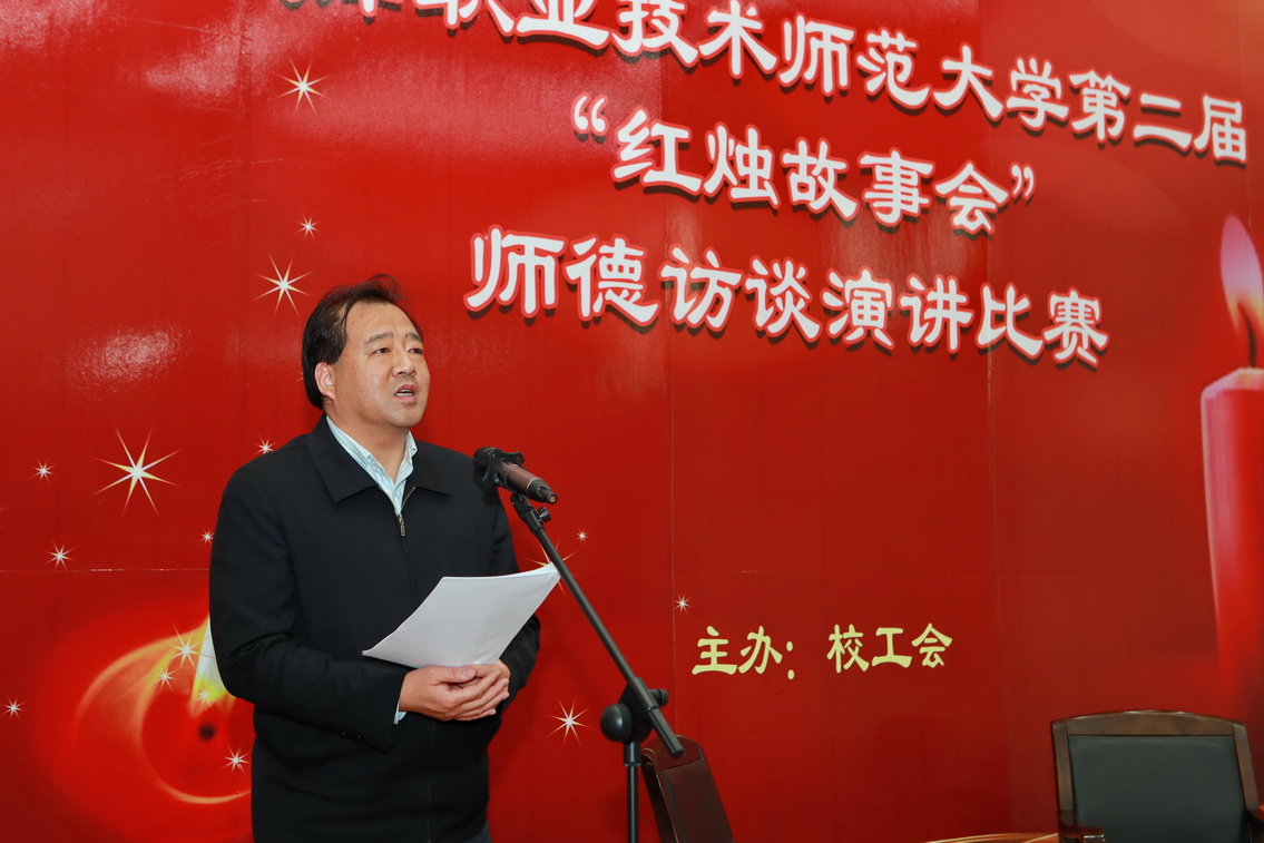 本网讯(通讯员 韩德新)11月23日,我校举行第二届“红烛故事会”师德访谈演讲比赛,深入贯彻落实习近平新时代中国特色社会主义思想和全国教育大会精神,加强师德师风建设,营造崇尚师德、弘扬先进的良好氛围。校党委书记张金刚出席并讲话。