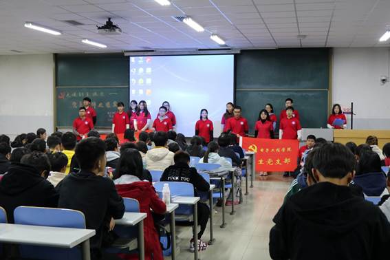 在党员先锋进课堂活动中,优秀党员、市级科技竞赛获奖者以“党员先锋,练就本领”为主题,为2018级新生分享学习经验和参赛经历,激励大家学好专业知识,练就技术本领,鼓励大家将个人理想与中华民族伟大复兴的中国梦相结合,补足精神之“钙”,树立远大理想,脚踏实地践行。