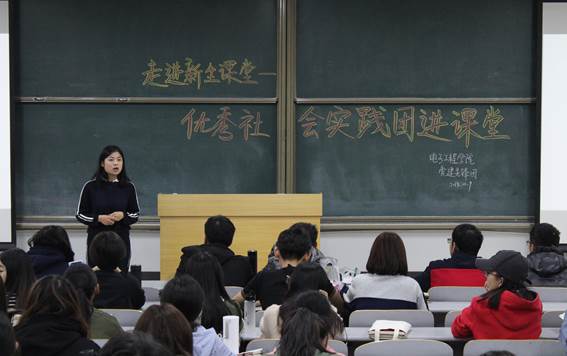 本网讯(通讯员 沈磊)11月9日至12日,电子工程学院面向2018级全体新生举办“走进新生课堂”系列活动,邀请优秀学子作分享交流,发挥朋辈榜样作用,拓宽新生视野,引领思想成长。活动分为党员先锋进课堂、优秀社会实践团队进课堂和科技精英进课堂三个活动。
