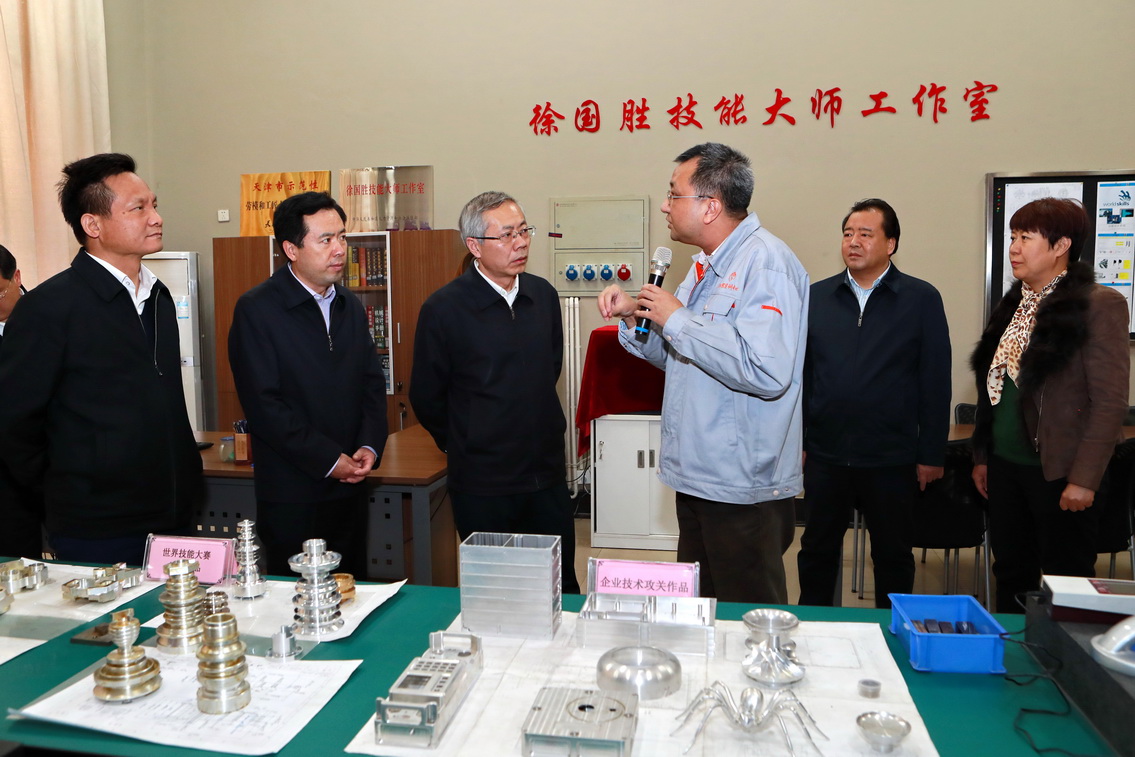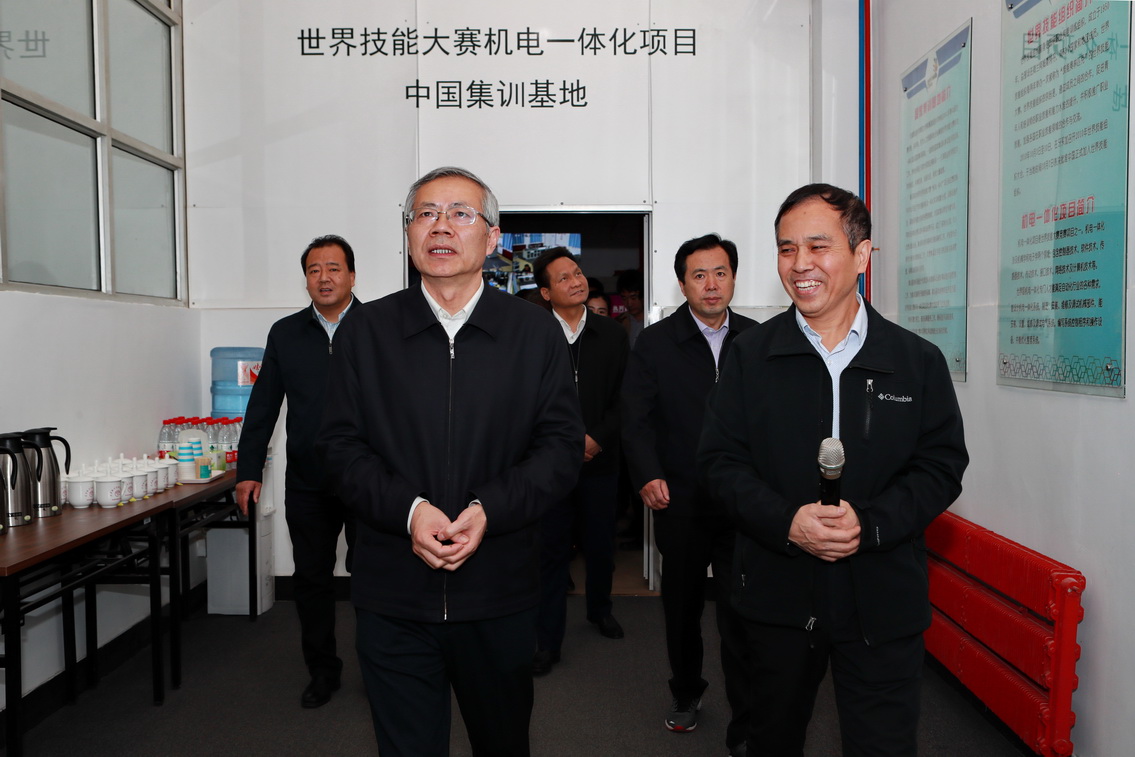 座谈会前,汤涛一行考察了“徐国胜国家级技能大师工作室”、世界技能大赛中国研究中心、世赛机电一体化项目集训基地,现场给予具体指导,对取得的工作成效给予充分肯定。