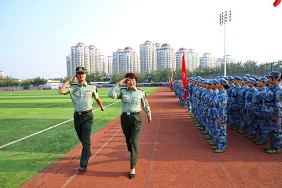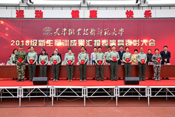 本网讯(通讯员 张久诗)9月27日上午,我校2018级学生军训成果汇报表演暨表彰大会在体育场隆重举行。市教委体卫艺处处长张华泉,天津警备区军训办副团职参谋傅傢中校,校党委副书记、校长刘欣,校党委副书记马雷,校党委常委、副校长李康出席。中国人民解放军某部队承训负责人张勇,我校军训工作领导小组成员及带训辅导员参加。武装部部长佟艳主持大会。