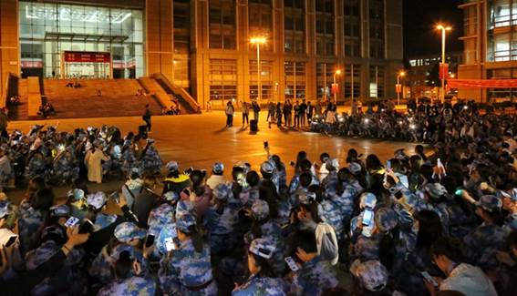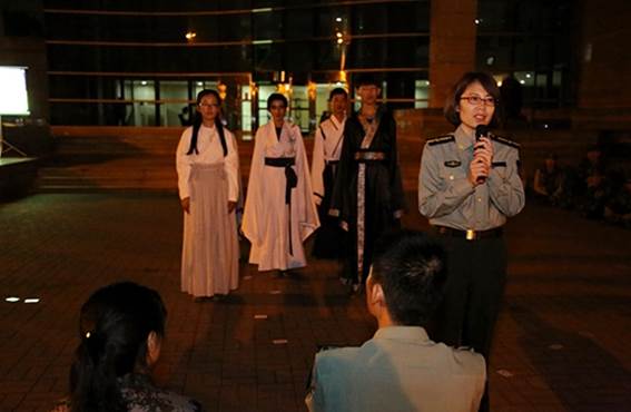 本网讯(通讯员 佟艳)9月24日,正值我国传统的中秋佳节, 对于正在进行军训的2018级新生们来说,他们在大学里度过的第一个中秋却有着别样的不同。各学院在晚操课训练期间组织了各具特色的中秋主题教育活动。
