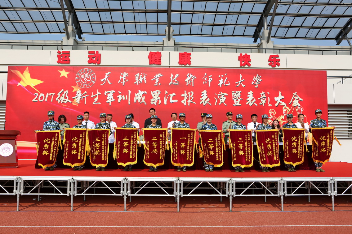 9月30日上午,我校2017级学生军训成果汇报表演暨总结表彰大会在体育场隆重举行。天津警备区军训办傅傢中校,市教委体卫艺处副处长杨继荣应邀出席。校党委书记李大勇,校党委常委、副校长阎兵出席。