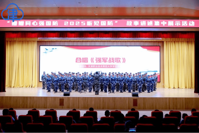 活动以国防故事讲述拉开序幕,来自天津市河西区同望小学的演讲者曹艺馨讲述《共和国的红》,让大家感受到一个关于“铭记”的国防故事;我校职业教育学院学生徐留泽、郑晨曦共同演唱歌曲《铭记》,唱出了对历史的敬畏、对先烈的追思、对和平的珍惜和对未来的承诺;国防故事讲述中,我校信息技术工程学院学生李卓显讲述《从青海湖到渤海湾,跨越千里的接力与信仰》,让大家感受到信仰的力量和责任的传承;任邦华、王尹、魏星屹、刘贺4位专业配音老师带来有声剧表演,阮务德烈士和战友们《突围》的故事;来自中国民航大学的刘煜祖带来《砺剑十年,转身瞄准新战场》的国防故事讲述;同样来自中国民航大学的国旗护卫队带来军事表演《刺杀操》,一招一式都展现着中国青年的过硬素质和昂扬斗志;天津科技大学的张圣琦讲述《心墙之外,是你要守的万家灯火》,以讲述父亲“老张”从军营到警营的人生历程,展示他为国为家的深切情怀;最后,活动在我校2025级新生带来的合唱——《强军战歌》中落下帷幕。活动中,还进行了国防知识有奖问答环节。