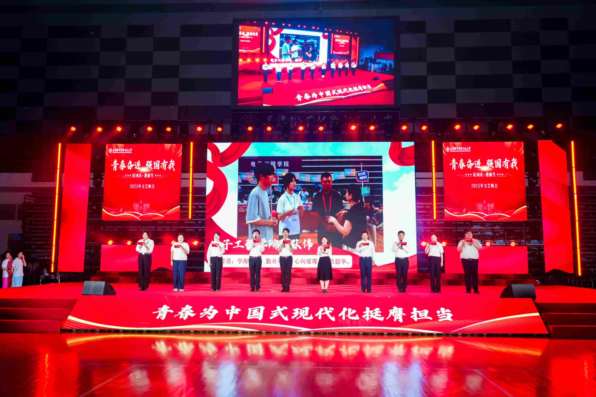 第二篇章“筑梦:精心育人 匠心传承”彰显学校育人特色与文化底蕴。第三届全国技能大赛工业4.0赛项金牌选手、学校首届新时代青年先锋与机械工程学院、自动化与电气工程学院学子演绎的主题剧《匠心》,通过人工智能AI助力,实现了青年学子与鲁班、黄炎培、陶行知三位大师的时空对话,尽显职业教育魅力和科技强国成效,激励新生传承匠心,逐梦前行;大学生艺术团舞蹈团的《十八焕蝶》舞姿曼妙,演绎关于蜕变与成长的故事;2025级新生辅导员代表的朗诵《启航,与爱同行》,以深情寄语为新生送上成长祝福;艺术学院的舞蹈《唱支山歌给党听》以舞寄情,诉说青年学子对党与祖国的赤诚;学校附属小学学生、教师代表与汽车与交通学院学子共同演绎的歌舞《我爱你中国》,献上对祖国母亲最炽热的告白,将晚会气氛推向高潮。