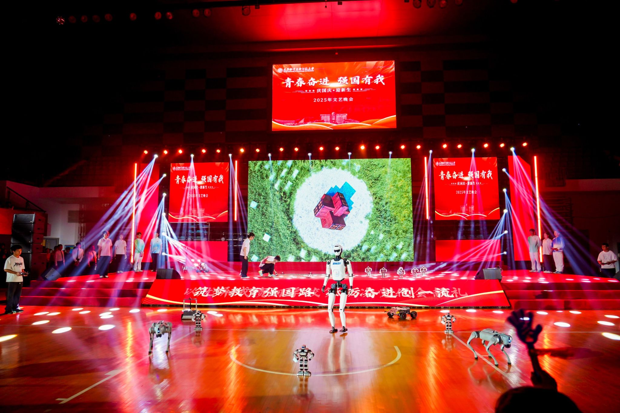 第一篇章“追梦:潜心读书 勤学砺能”聚焦青年学子的求知之路与奋斗初心。电子工程学院带来的舞蹈《第一天》以动感舞姿展现新生迈入校园的青涩与憧憬;新生代表与各学生社团联袂呈现的歌舞串烧,从《青春修炼手册》的活力洋溢到《闪耀》的执着坚守,诠释了青春的无限可能;主题剧《以青春的名义宣誓》通过新疆职教支教团、社会实践团等代表的演绎,刻画了师生“潜心读书,精心育人,我们都是奋斗者”的生动实践;大学生艺术团舞蹈团的《薪火》以优美舞姿传递精神传承的力量;信息技术工程学院新生和2025级军训教官带来的《强军战歌》气势恢宏,彰显青年报国志。