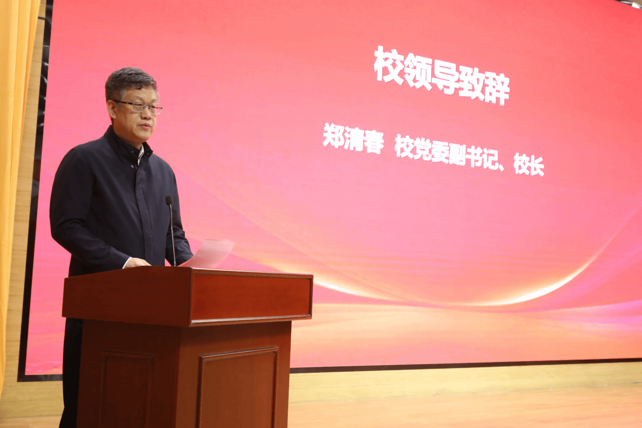 郑清春代表学校向全体老同志致以节日的诚挚问候。他在致辞中回顾了学校46年来的发展历程,强调老同志是学校的宝贵财富,感谢他们为学校建设与发展所作出的卓越贡献,并介绍了近年来学校在博士学位点建设、技能大赛、筹备建设上合组织职教中心落户等方面取得的突破性进展。