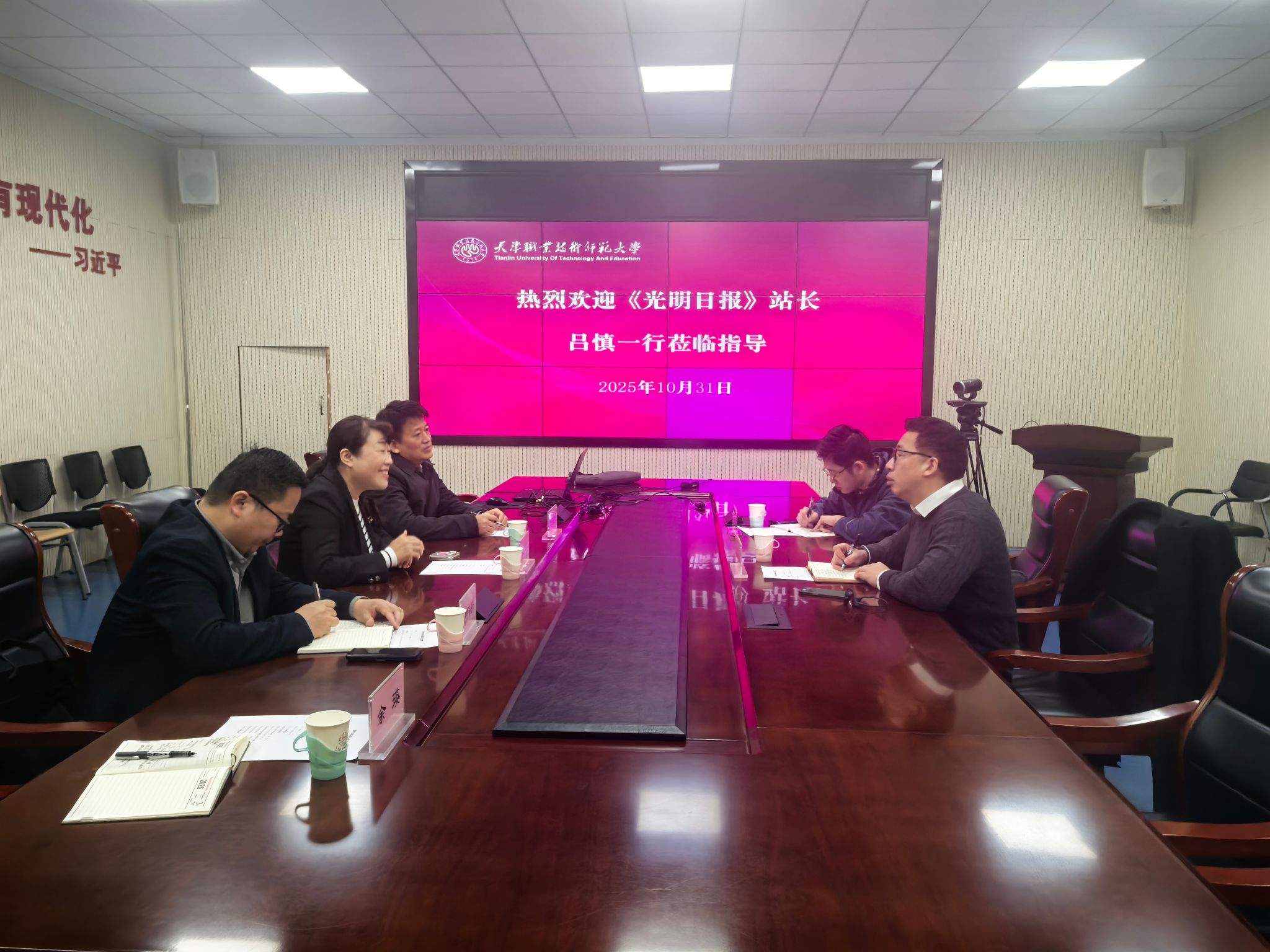 吕慎对我校鲜明的办学特色和突出的办学成果给予了高度评价。他表示,光明日报社天津记者站与学校已经建立很好的合作关系,今后将持续关注学校在人才培养、铸牢中华民族共同体意识教育、鲁班工坊建设、中国—上海合作组织职业技术教育合作中心发展等方面的重点和亮点工作,开展深度报道,加强合作。