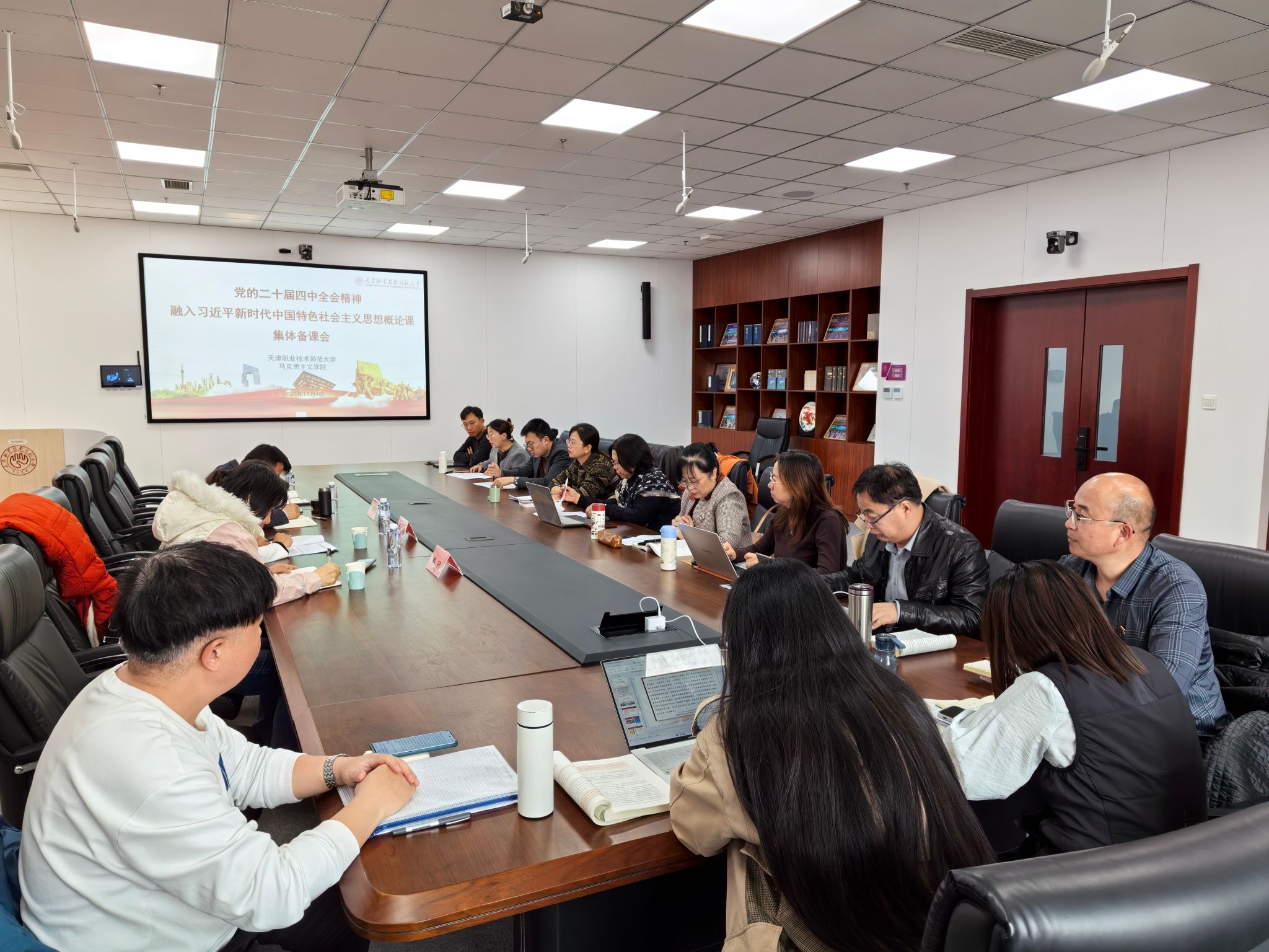 备课会以“党的二十届四中全会精神深入融入习近平新时代中国特色社会主义思想概论课程”为主题。张葆春、楚莉莉、王婷婷三位教师分别围绕各自教学专题深入分析如何将党的二十届四中全会精神及时、准确、生动地融入思政课堂。董经纬系统介绍了“合作中心”的成立背景、战略意义及重要成果。大家一致认为,作为习近平新时代中国特色社会主义思想概论课教师,要先学一步、深学一层,全面把握全会提出的新思想、新论断、新举措,特别是要深刻理解“夯实基础、全面发力”的基本定位和“高质量发展”“科技自立自强”等重大命题;要将学习贯彻党的二十届四中全会精神与学习贯彻党的二十大和二十届二中、三中全会精神结合起来,与学校《强校建设行动方案(2025-2027年)》贯通讲;要充分发挥智慧教学平台的功能,深度挖掘“合作中心”作为思政课实践教学场所的潜力,为赋能思政课建设提供独特资源;要用好天津案例、本校案例等身边资源,让全会精神冒热气儿、接地气儿,切实增强课堂的吸引力和实效性,提升学生的理论认同与学习主动性。