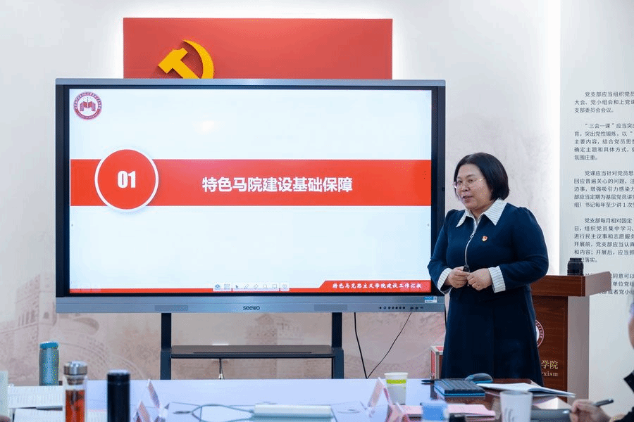 校党委宣传部副部长仲伟邦介绍了学校近期学习宣传贯彻党的二十届四中全会精神的相关情况和初步成效。马克思主义学院党总支书记佟艳汇报了学院将党的二十届四中全会精神系统、深入地融入思政课教学的情况、特色做法及效果。马克思主义学院院长张葆春汇报了特色马克思主义学院的建设情况。