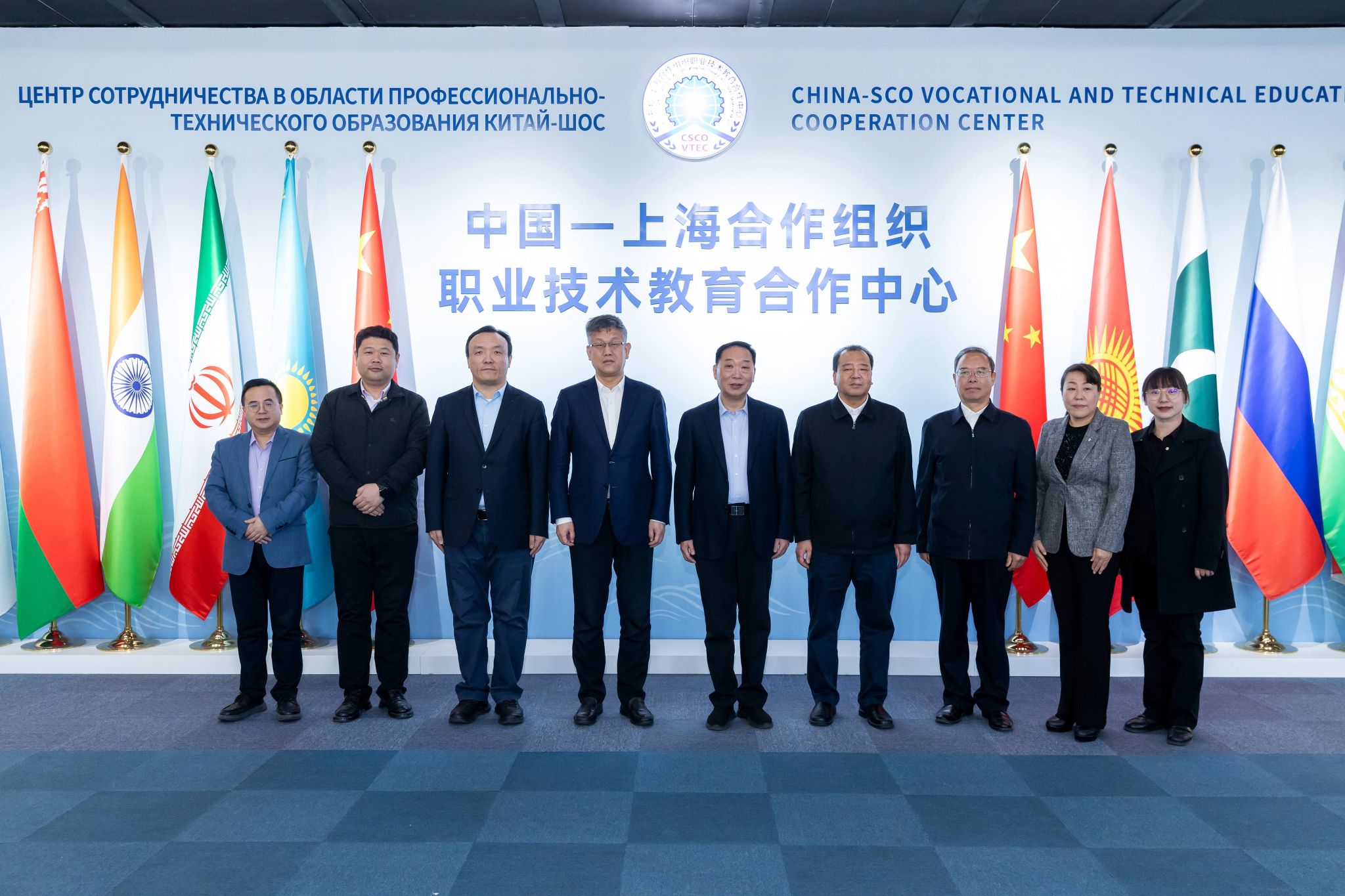 讲授思政课前,殷向杰一行到中国—上海合作组织职业技术教育合作中心进行调研。