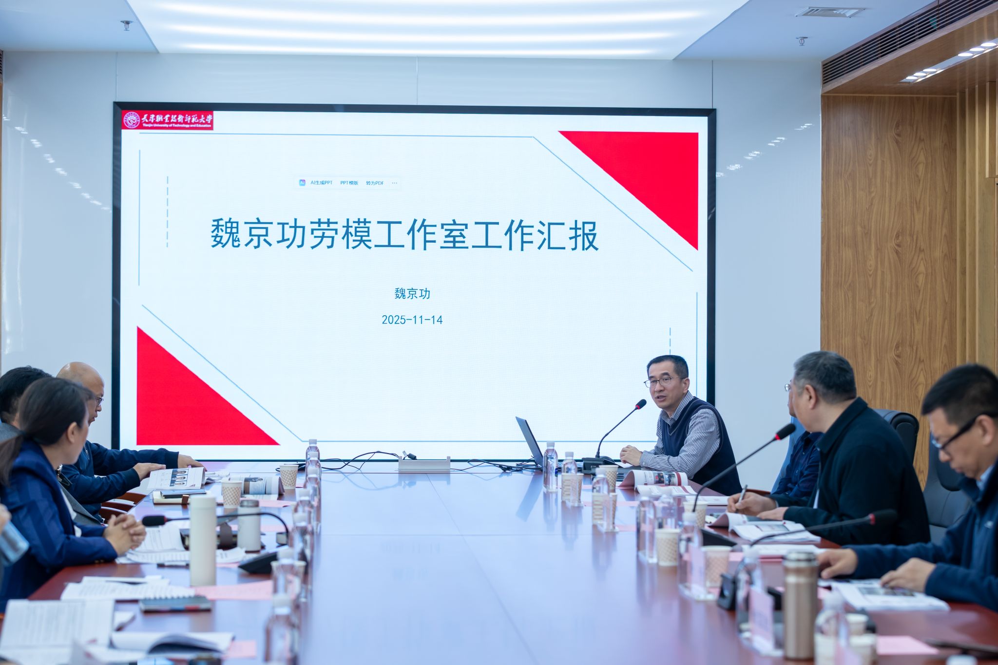 李靖指出,在市总工会、市教育工会大力支持、学校党委统一部署和全校上下的共同努力下,学校的劳模和工匠人才创新工作室建设实现了历史性突破,呈现出“百花齐放”的良好局面。学校“徐国胜劳模创新工作室”获评“全国教科文卫体系统示范性劳模和职工创新工作室”,经济与管理学院工会荣获中华全国总工会授予的“全国模范职工小家”荣誉称号,“市政协工会界别徐国胜委员工作室”揭牌成立。她强调,面向新征程,学校工会系统要对标国家级、市级工作室的建设标准和要求,加大对立项工作室的投入,做到精准指导、严格考核,确保建一个、成一个、亮一个,推动校级工作室向市级、国家级冲刺。