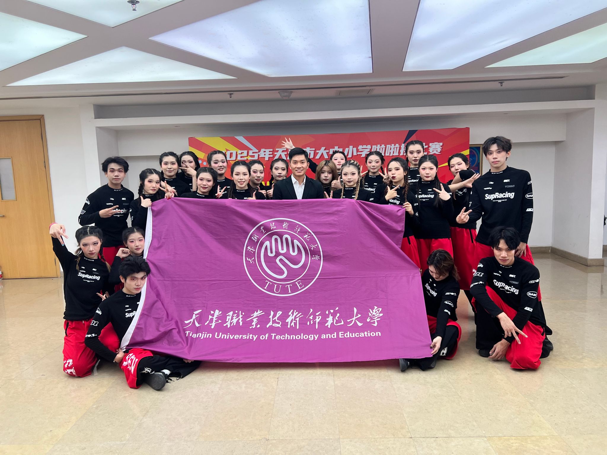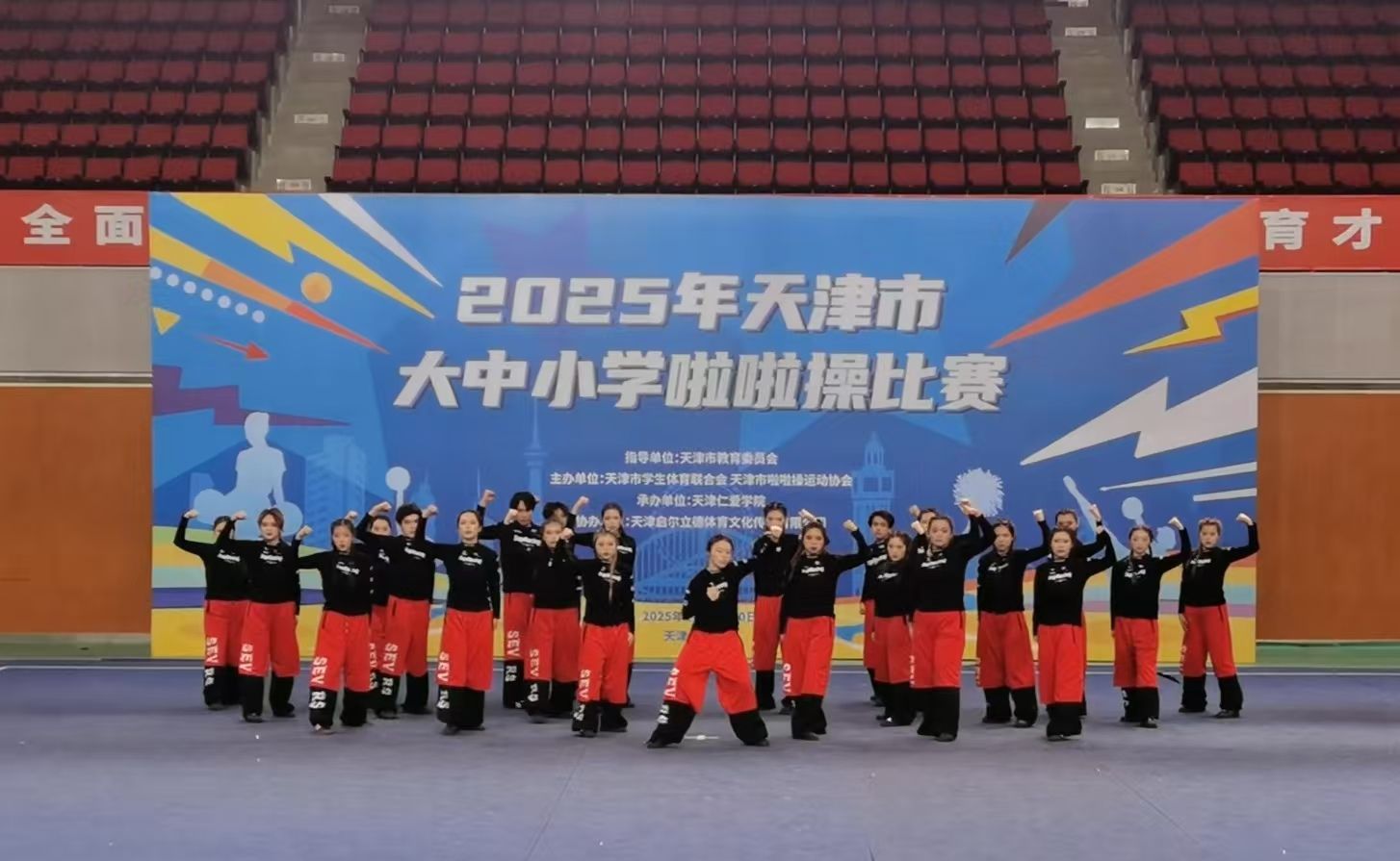 本网讯【通讯员 姜贤国】11月30日,2025年天津市大中小学啦啦操比赛圆满落幕。我校参赛队伍凭借出色的技术水平和团队协作能力,在“啦啦操自选动作-集体街舞”和“2025版规定套路初级A-街舞”两个项目摘得桂冠,分获第一名。在“啦啦操自选动作-双人花球”项目中获第五名。
