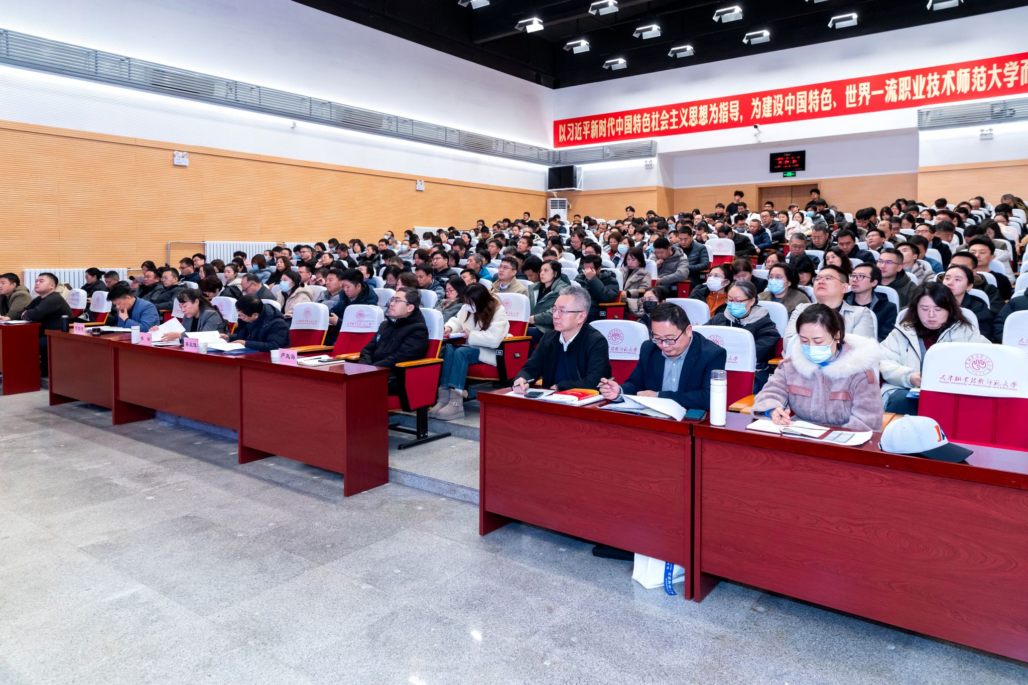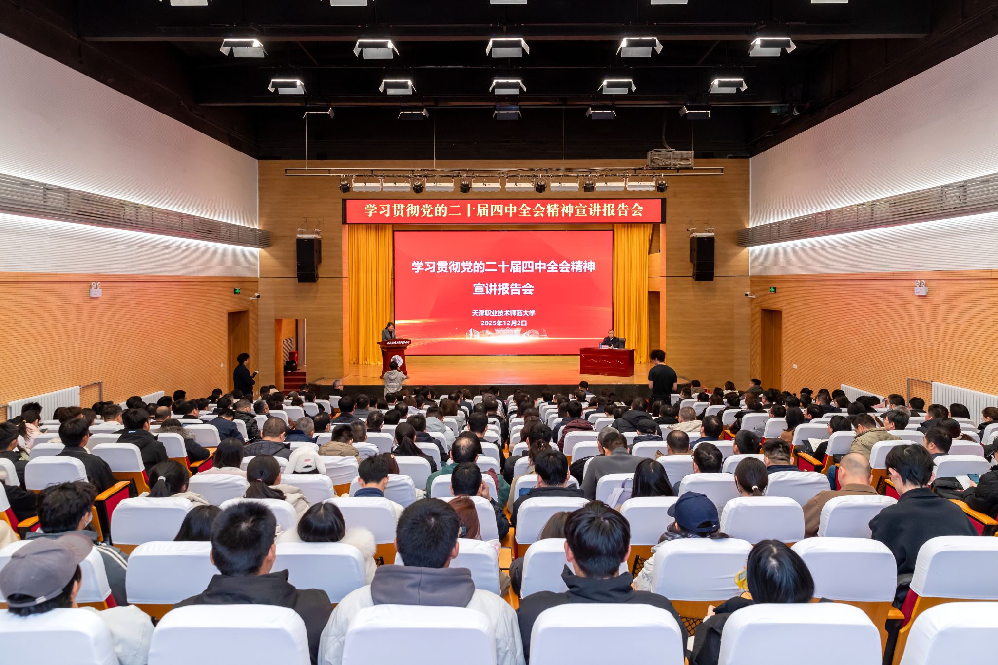 报告会上,张金刚紧紧围绕深入学习领会习近平总书记在党的二十届四中全会上的重要讲话和《中共中央关于制定国民经济和社会发展第十五个五年规划的建议》精神,紧扣“深入学习贯彻党的二十届四中全会精神,奋力谱写中国特色、世界一流职业技术师范大学新篇章”宣讲主题,从深刻认识全会的重大意义,准确把握“十五五”时期在基本实现社会主义现代化进程中的重要地位,深刻领会、全面理解“十五五”时期经济社会发展的指导方针和主要目标、战略任务和重大举措,坚持和加强党的全面领导、凝聚起推进中国式现代化的磅礴力量,全力以赴抓好党的二十届四中全会精神贯彻落实,推动全会精神在天职师大落地生根、取得实效等方面,对党的二十届四中全会精神作了深入宣讲和阐释。
